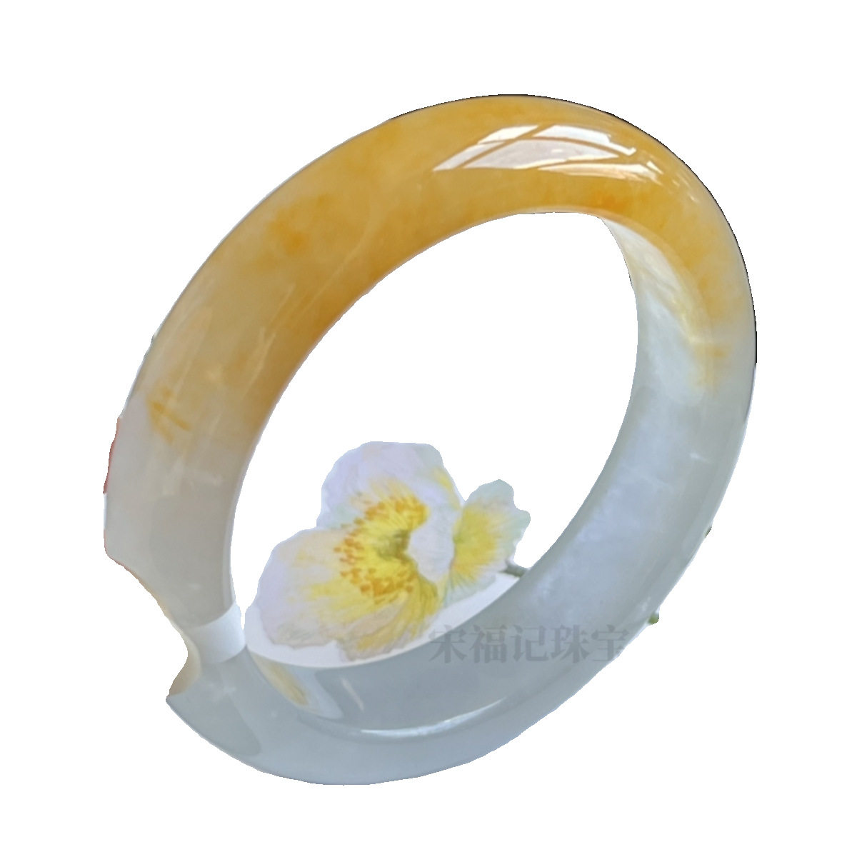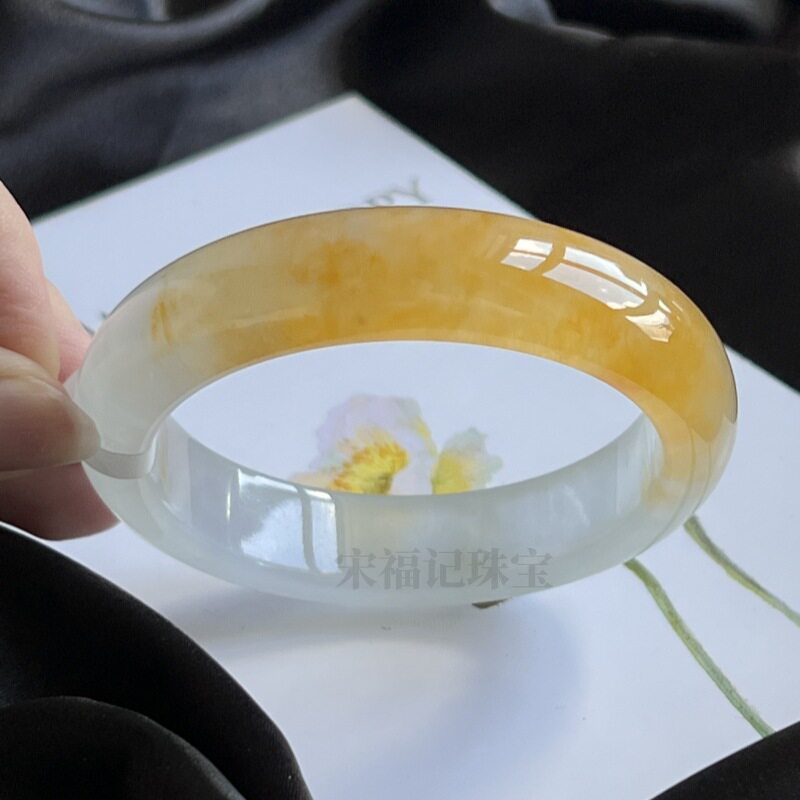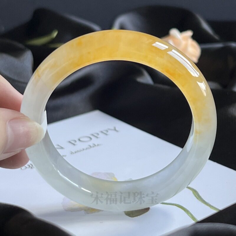 缅甸老坑冰种蜜黄翡翡翠手镯玉石黄翡鸡油黄半山半水玉镯子女