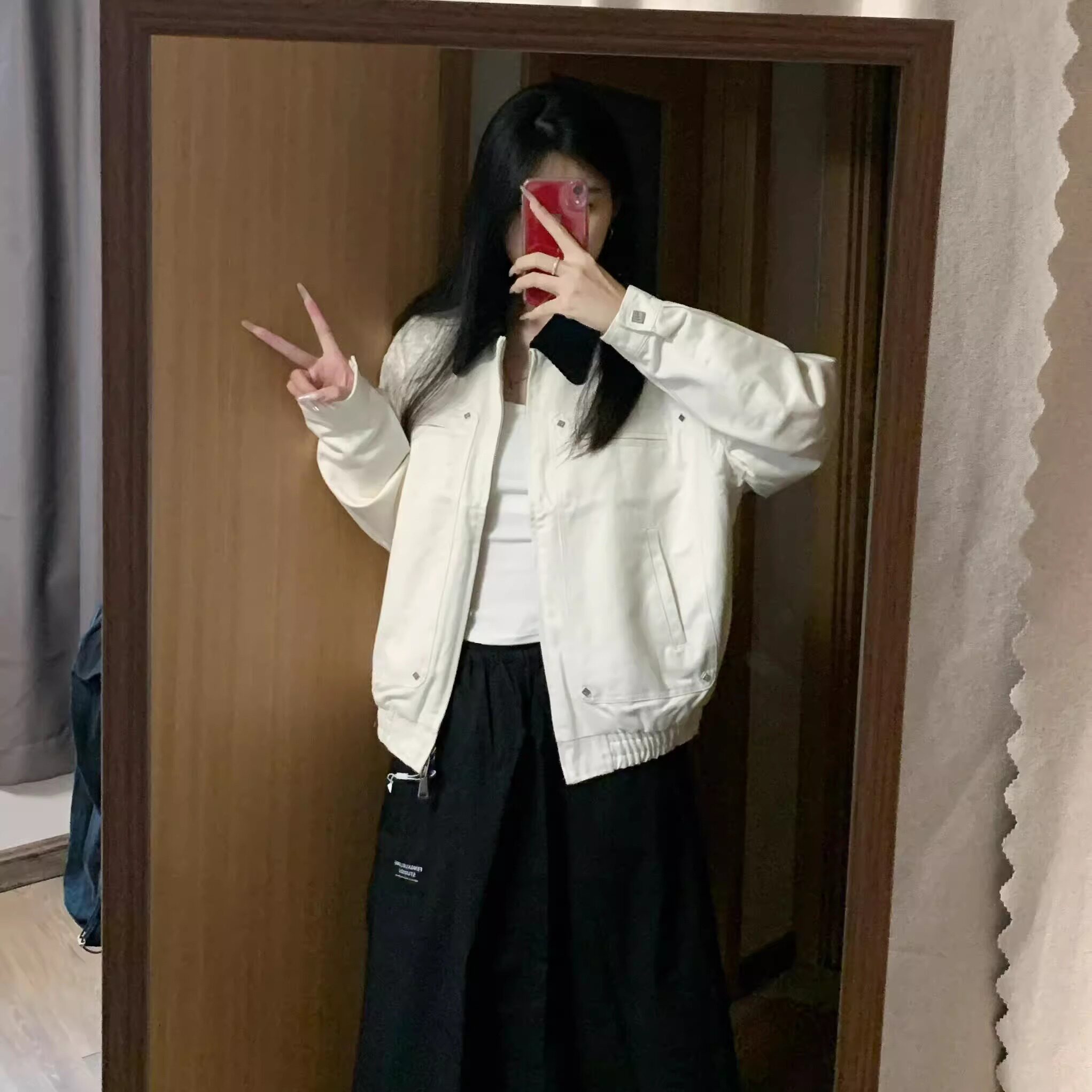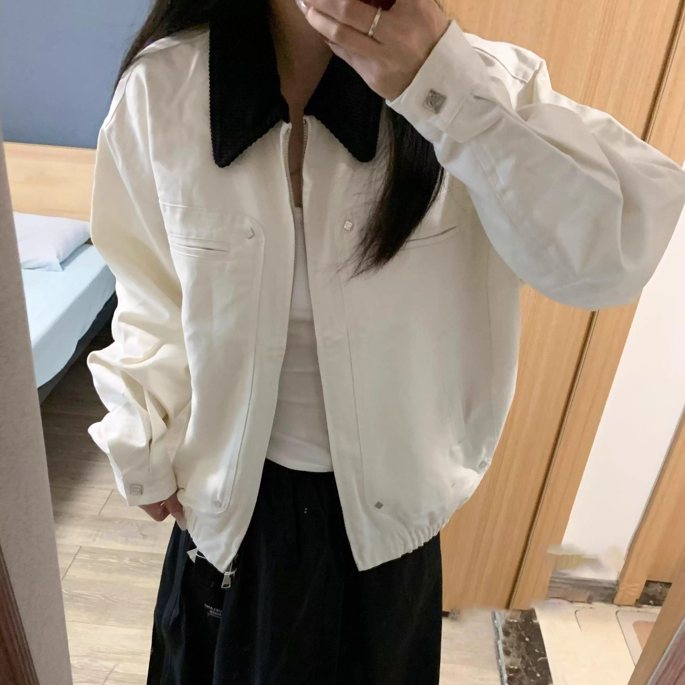 覆古巴恩风翻领夹克外套女秋季新款宽松小个子初秋穿搭工装上衣潮