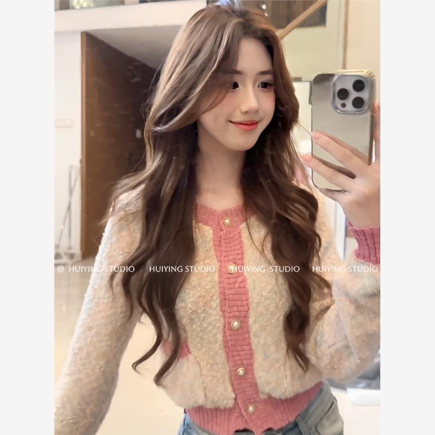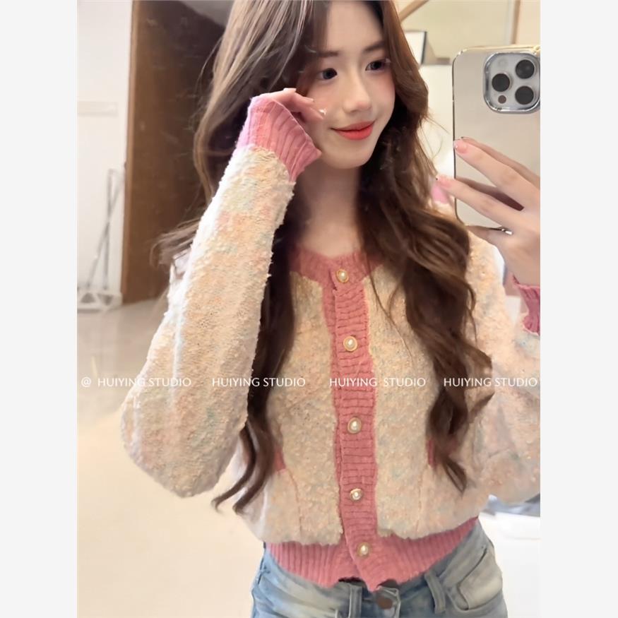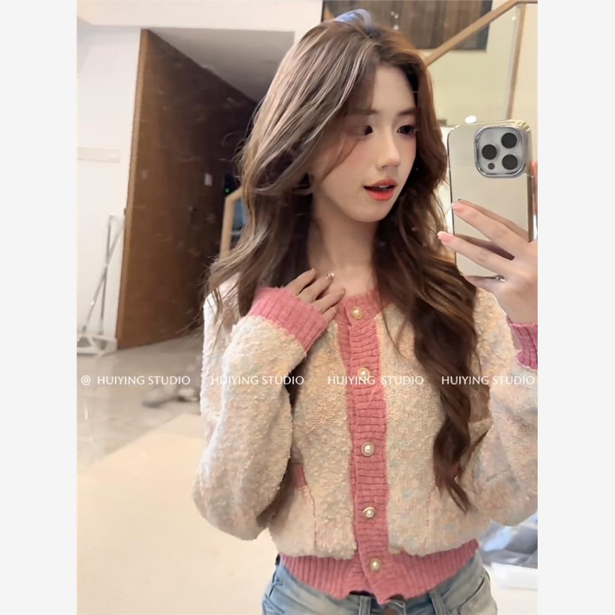 法式粉色小香风毛衣女秋冬2024年冬季新款软糯短款开衫外套高级感