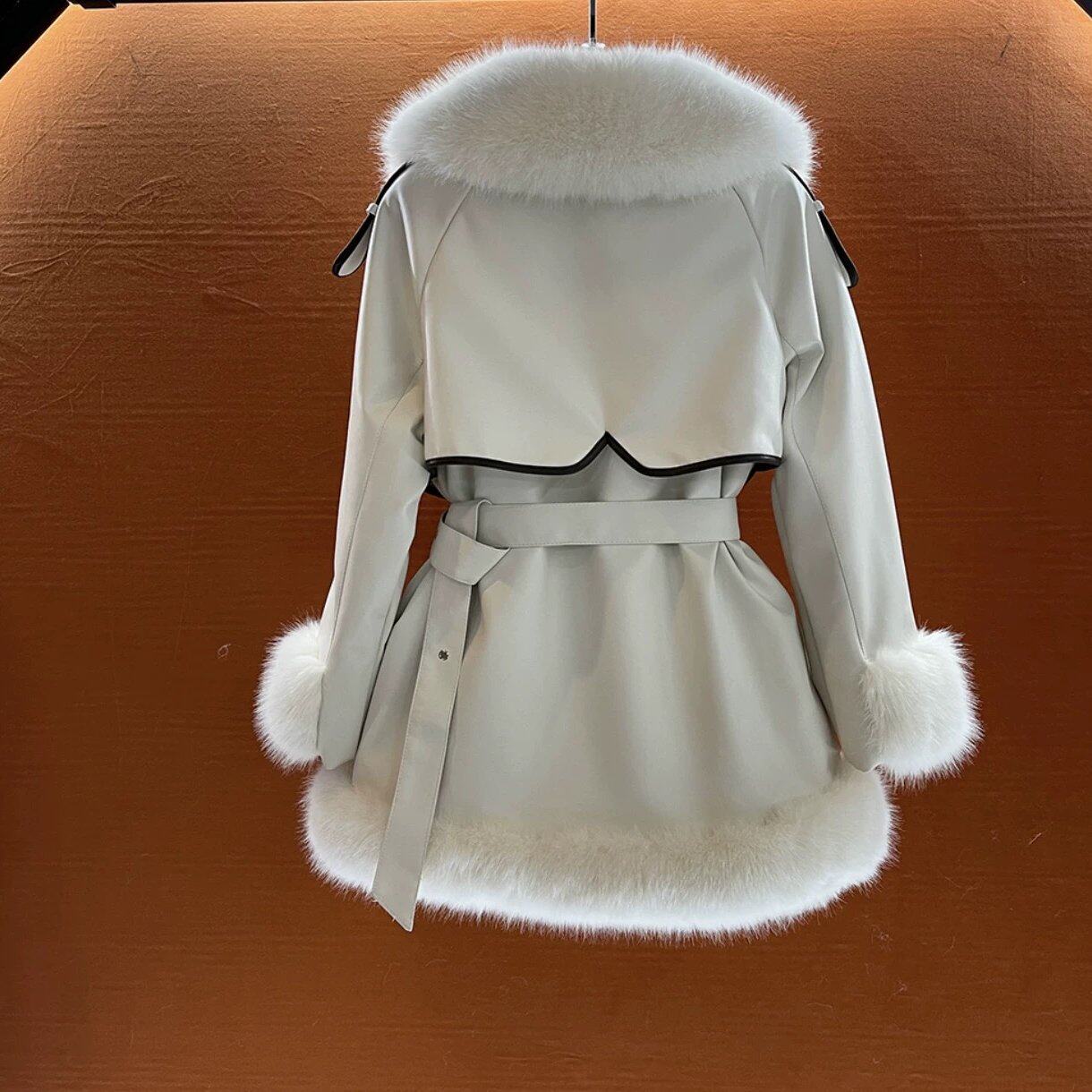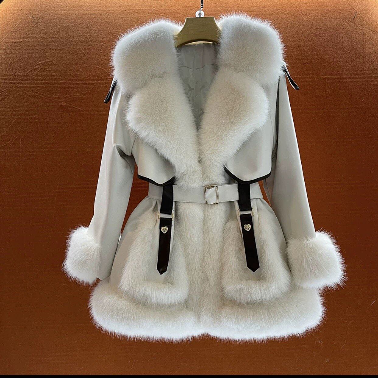 气质大毛领系带中长款毛毛外套女2025冬季新款保暖皮毛一体上衣