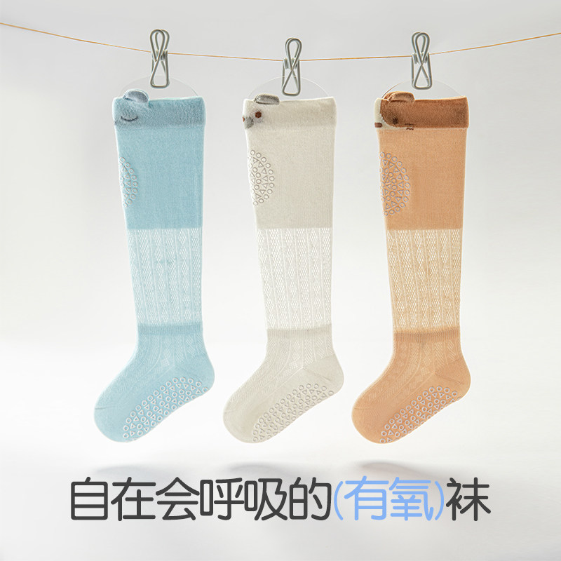 婴儿袜子夏季薄款过膝宝宝爬行长袜护膝防滑防蚊袜儿童学步袜