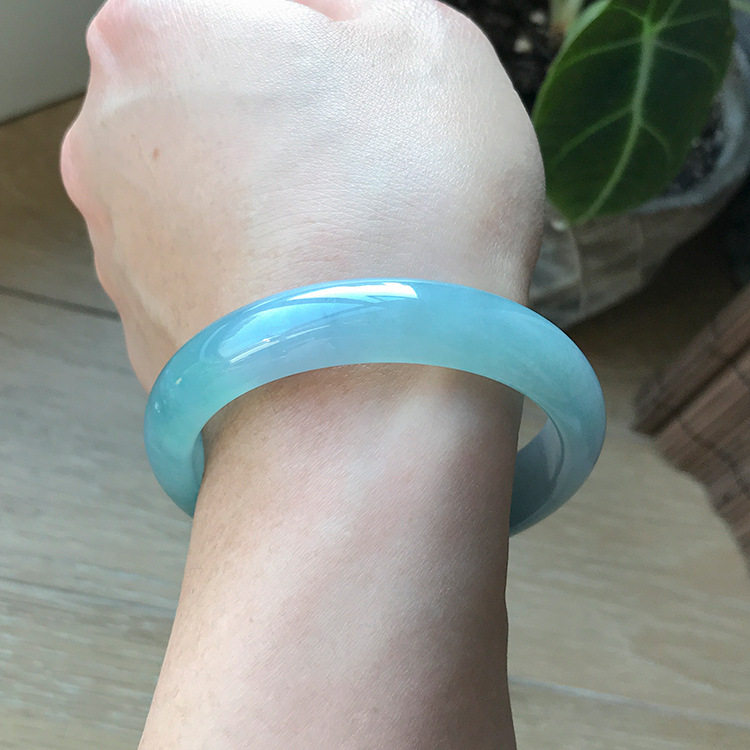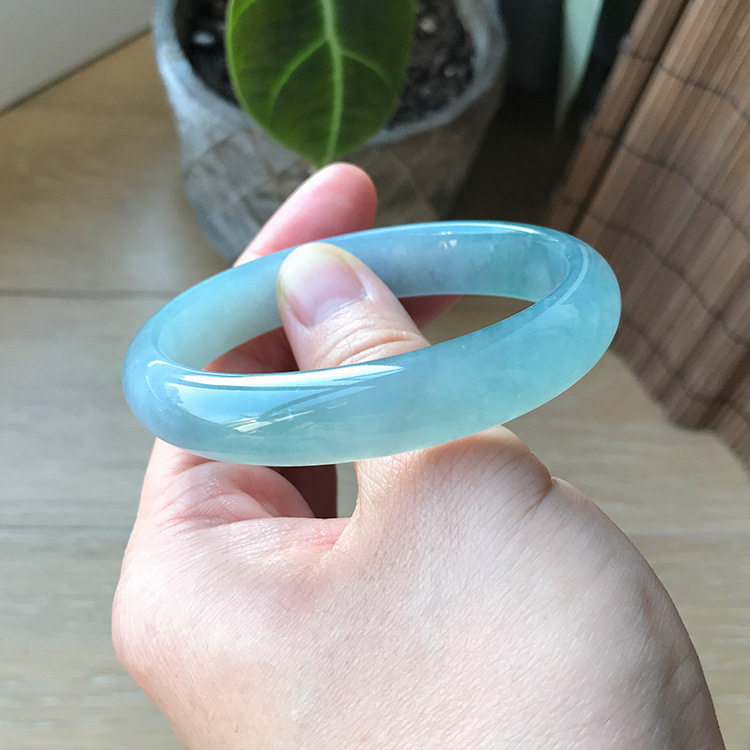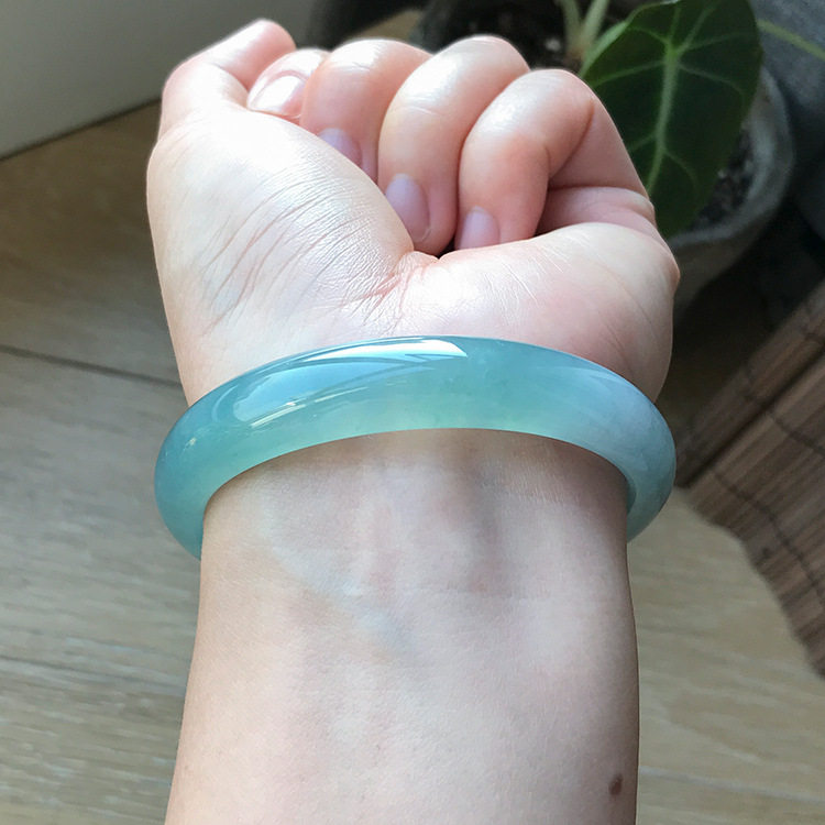 蓝水天然冰种海蓝宝玉镯女款天青冻女士手镯子天空蓝翡翠岫玉