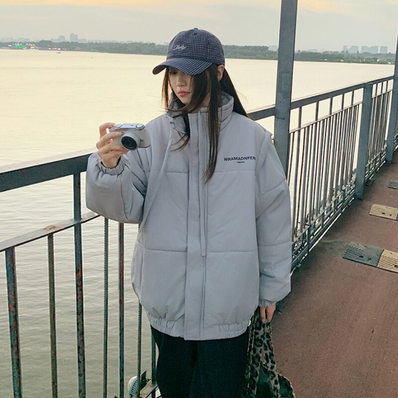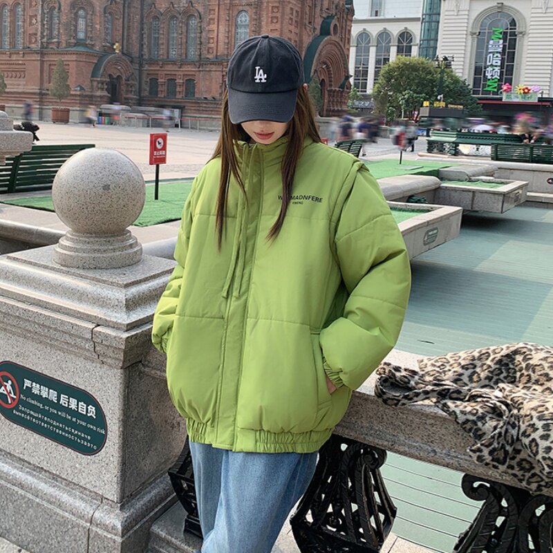 2025年冬季时尚加厚棉服女袖子可拆卸男女同款宽松保暖情侣装外套