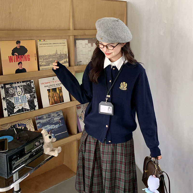 东京岁时记jk早春穿搭秋冬藏青色针织衫显瘦毛衣外套女小个子上衣