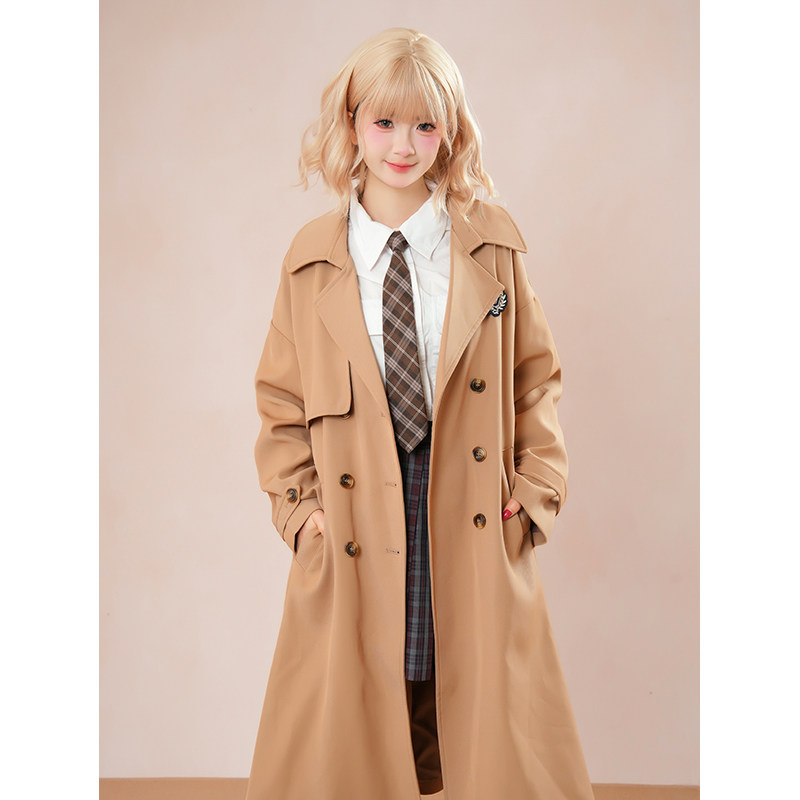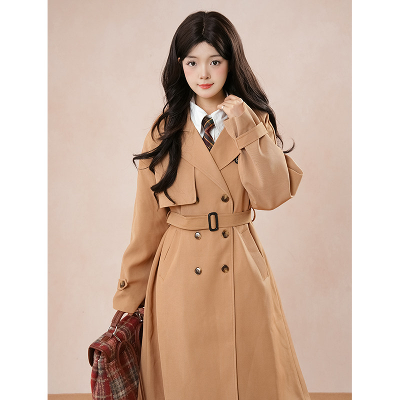 JK制服学院风长款风衣女气质2025秋新款百搭减龄小个子长款短外套