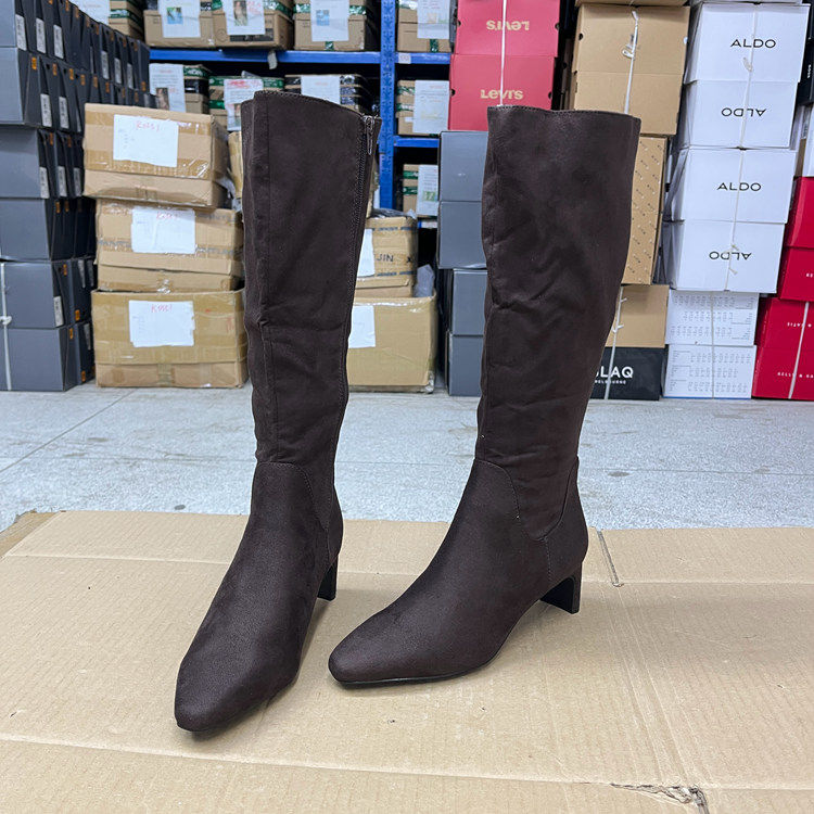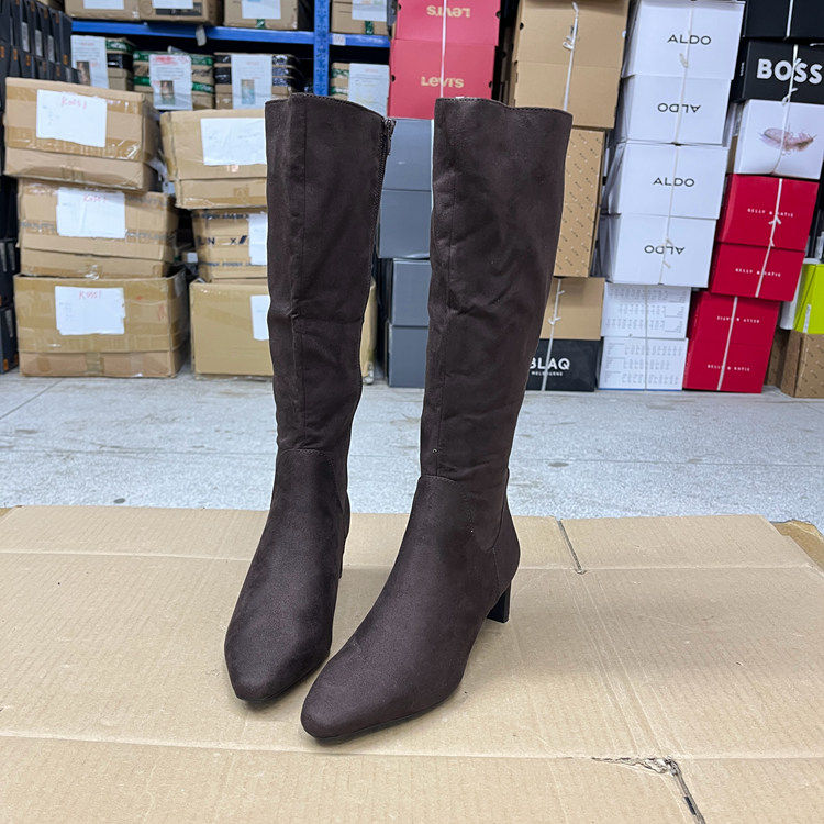 外贸原单女靴新款时尚尖头纯色细高跟侧拉链时装长靴显瘦西部靴