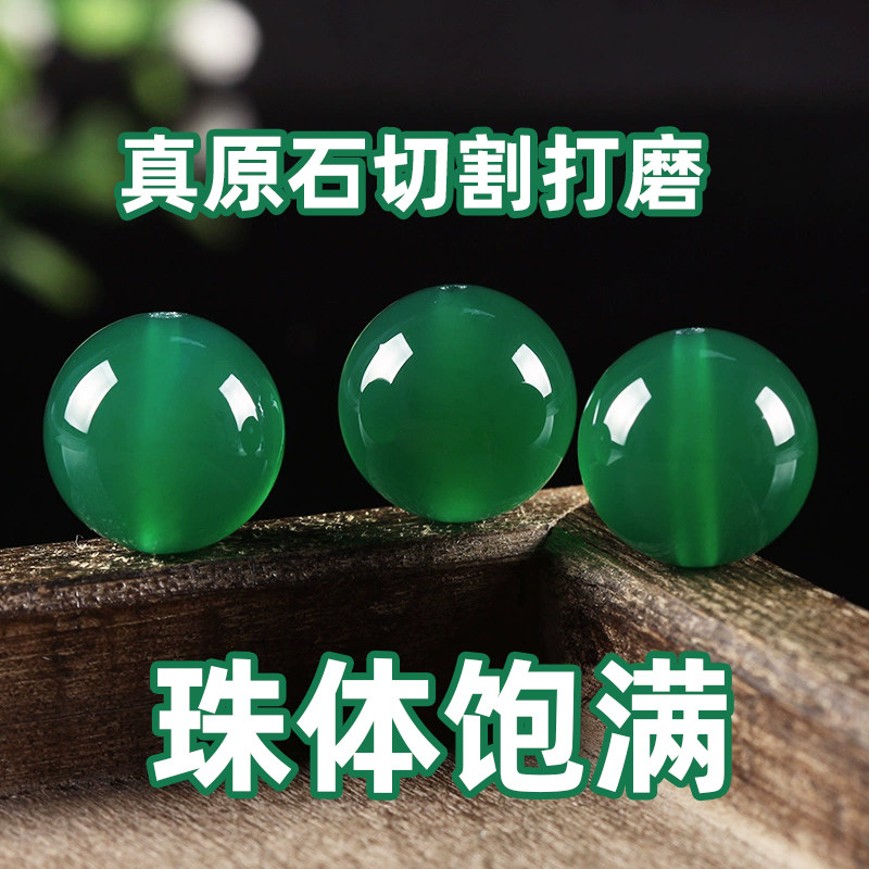 9A级天然绿玛瑙珠子散珠手链DIY配件玉髓碧玉圆珠手工串珠材料