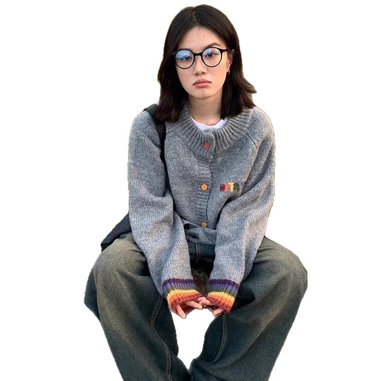 【绵羊绒】大码减龄慵懒长袖毛衣开衫女装秋季新款宽松外套上衣女