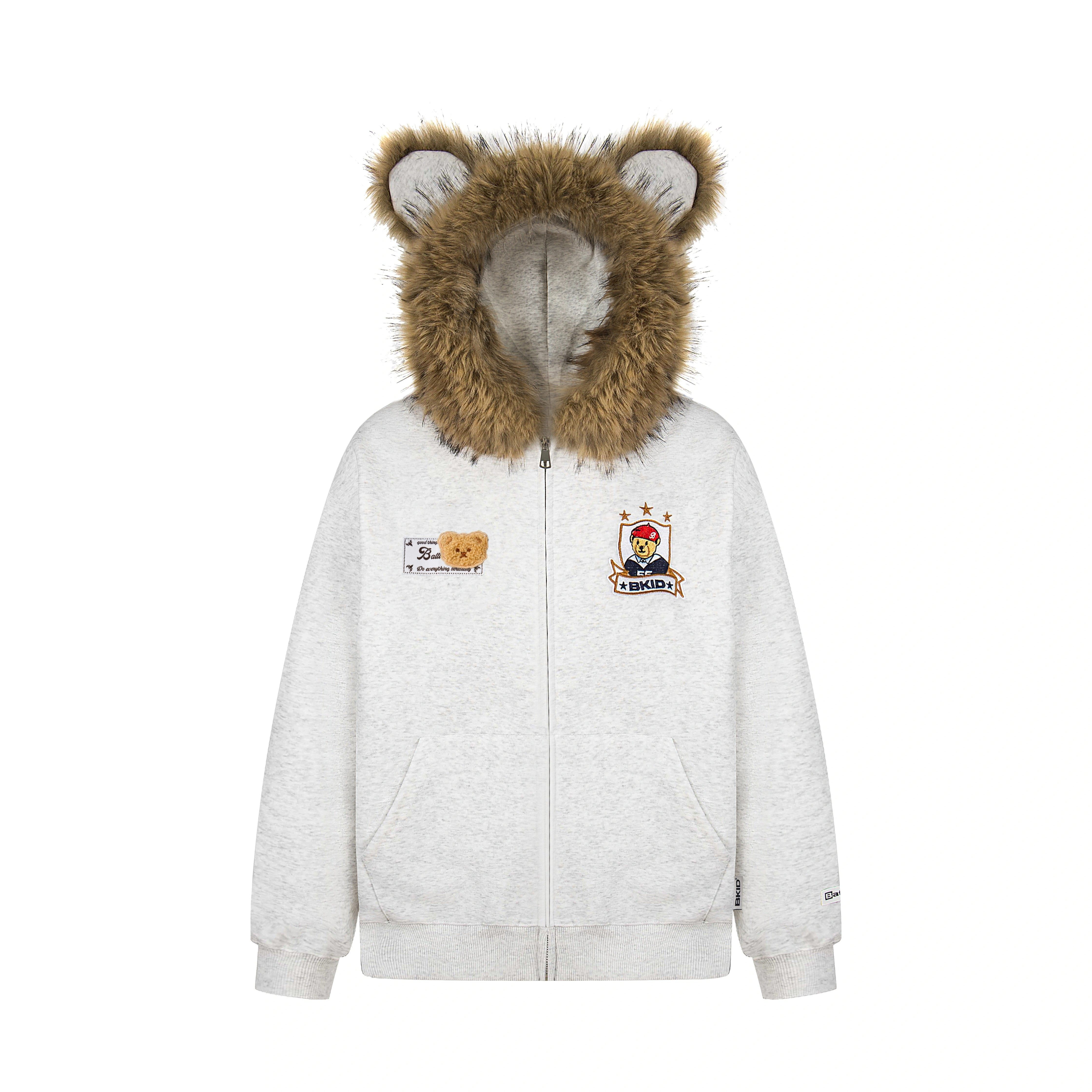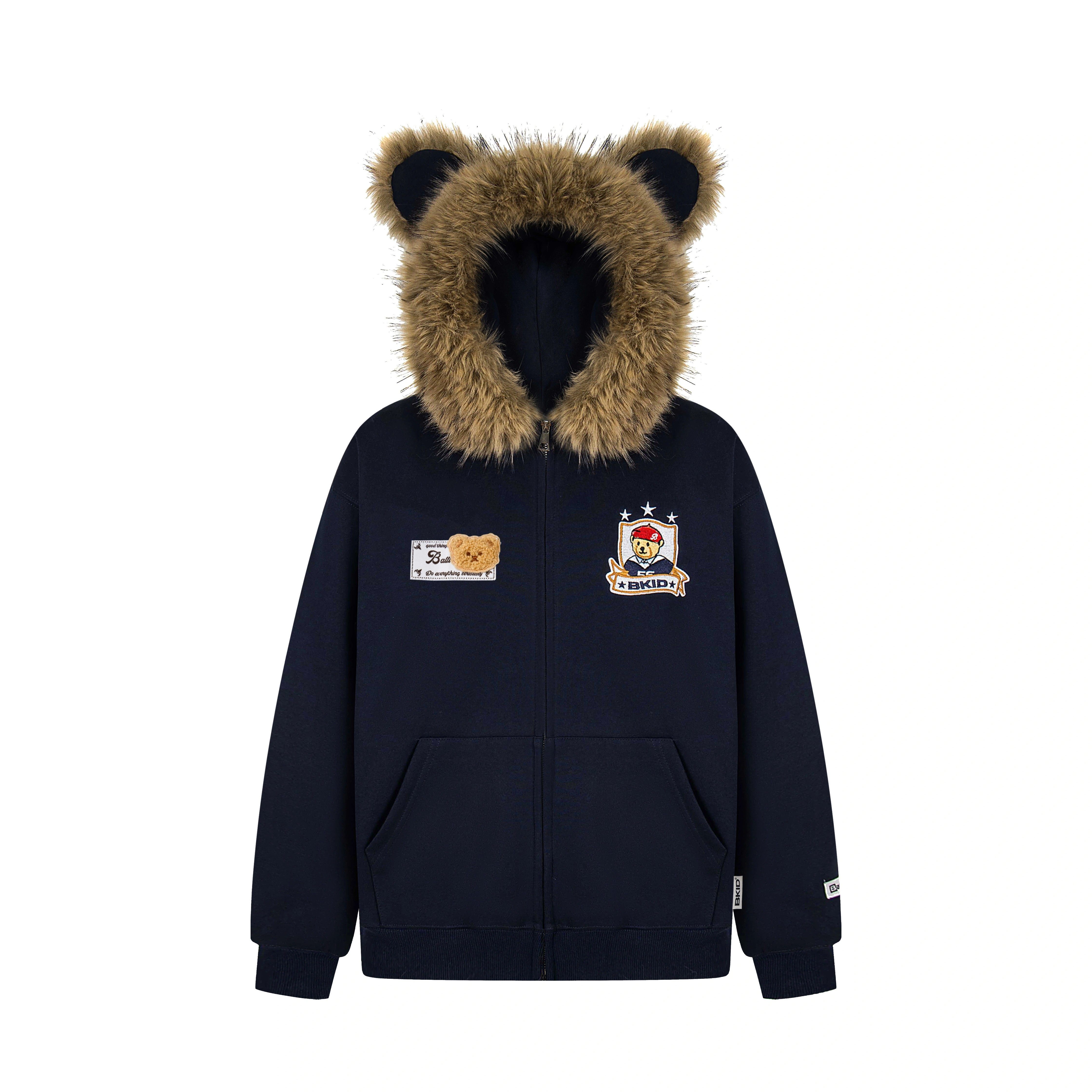 毛领可拆卸 小熊毛领开衫外套男女款加绒连帽卫衣