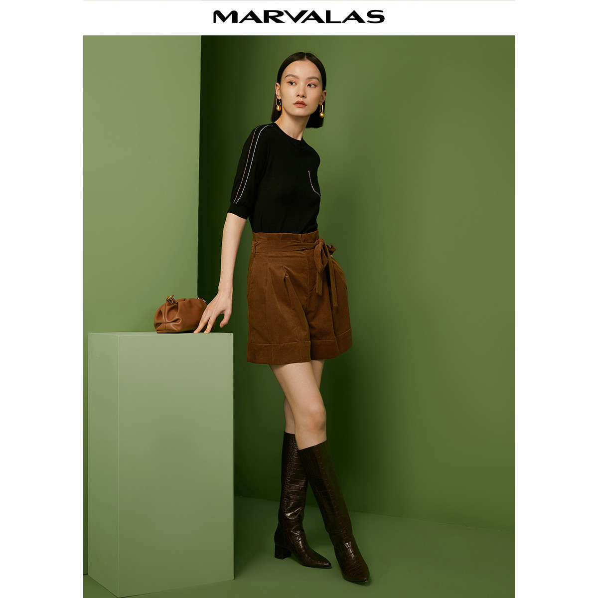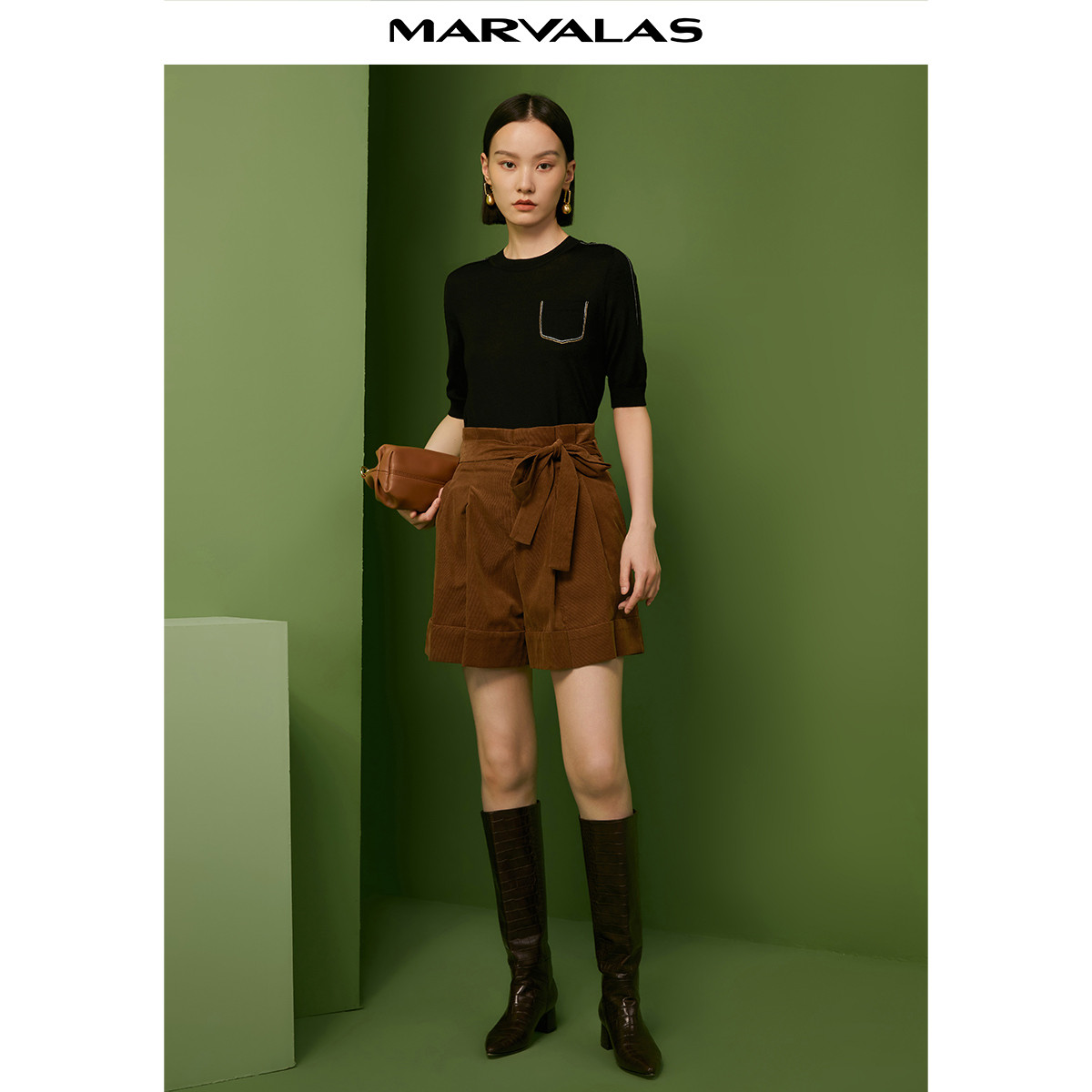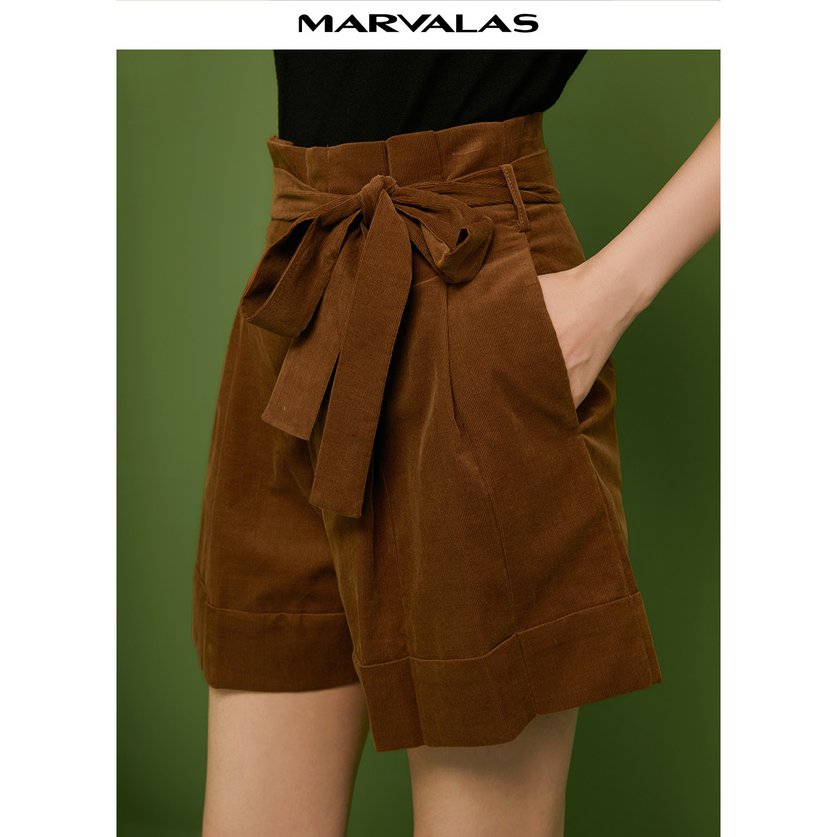 【呼呼严选专享】高腰花苞裤女秋季全棉蝴蝶结系带阔腿五分短裤M1