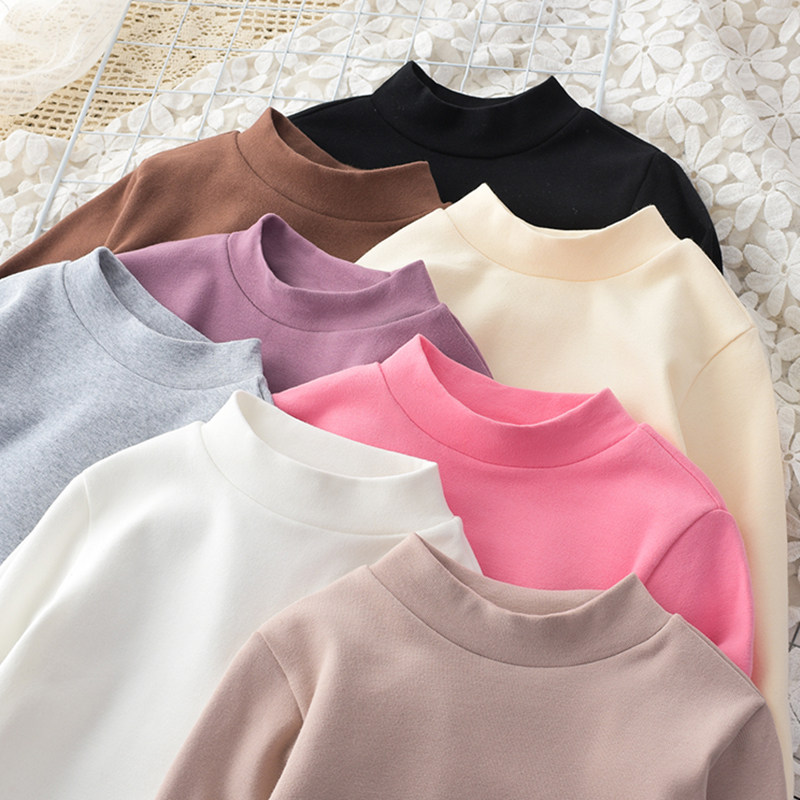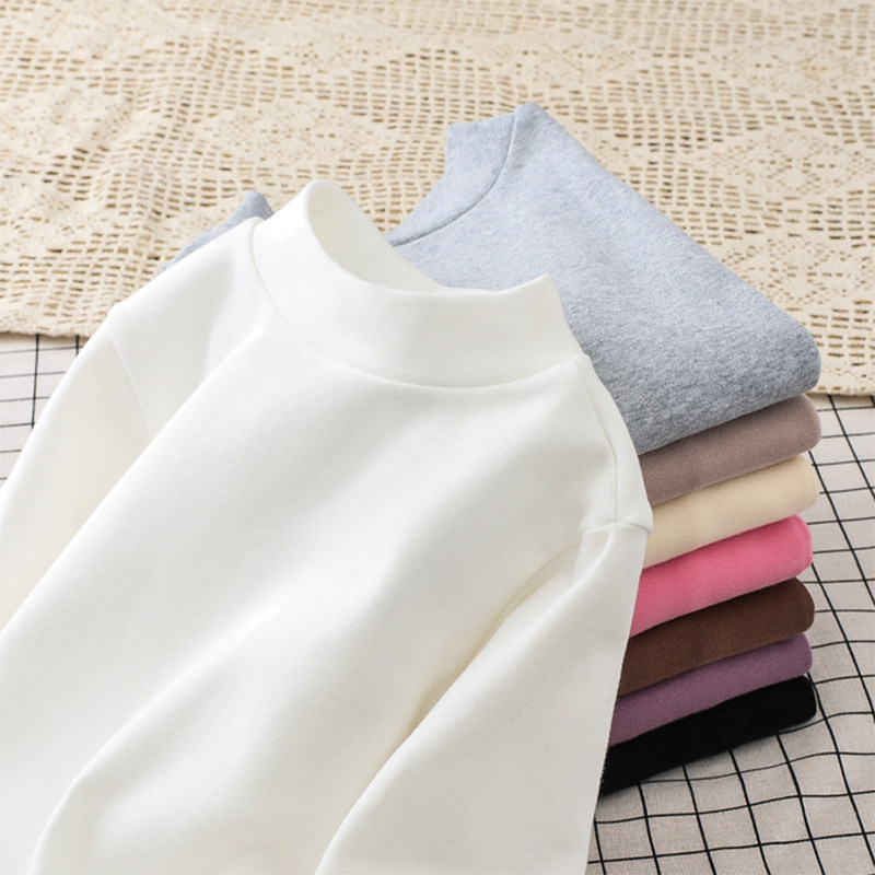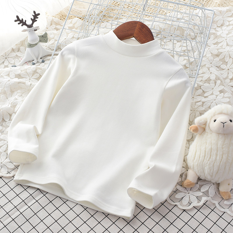 全棉时代儿童白色打底衫纯棉纯色半高领春秋女男童长袖中高领t恤