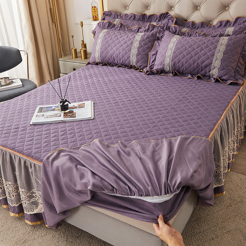 2025新款床裙床笠蕾丝边裙边可拆卸床罩三件套单件红色加厚带新款