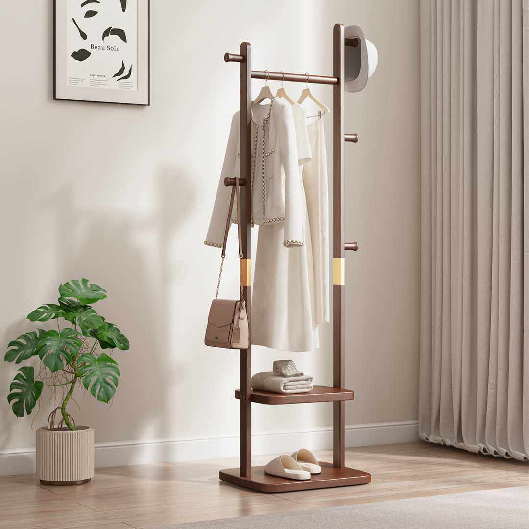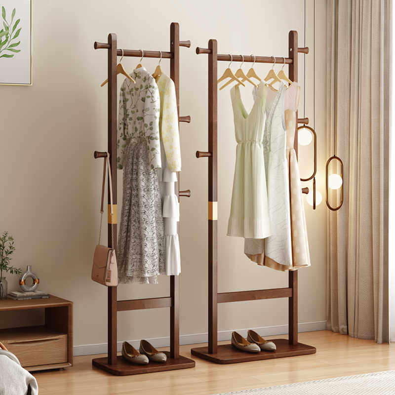实木衣帽架落地挂衣架可移动创意衣架挂包架简约现代衣服架子家用