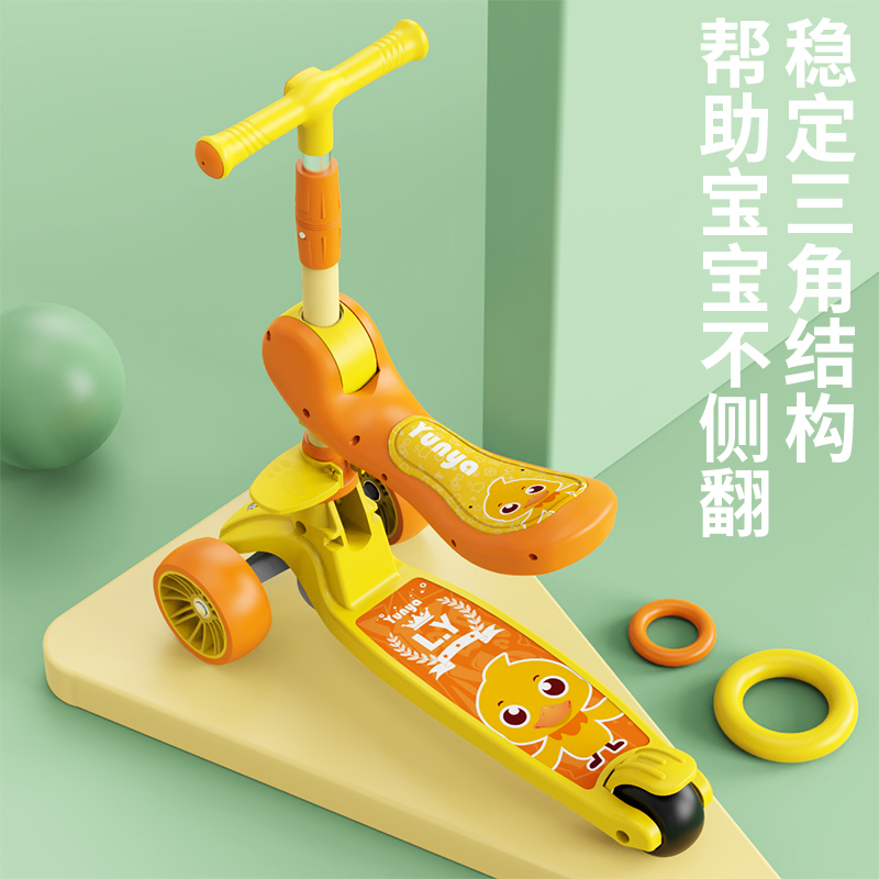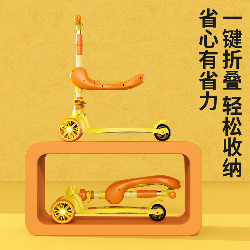 滑板车儿童1-3-6-8-12岁男女幼宝宝三合一可坐可骑折叠溜溜滑滑车