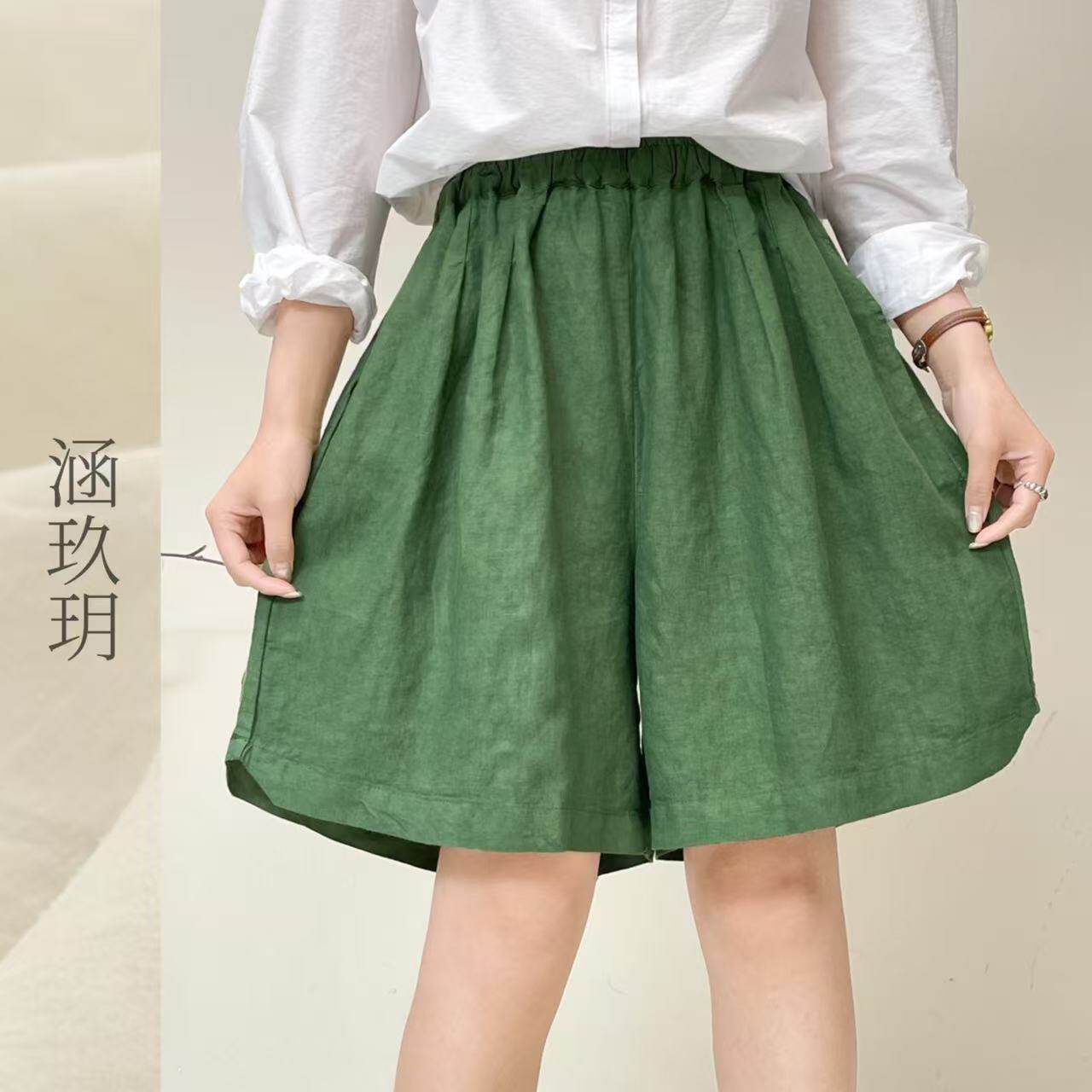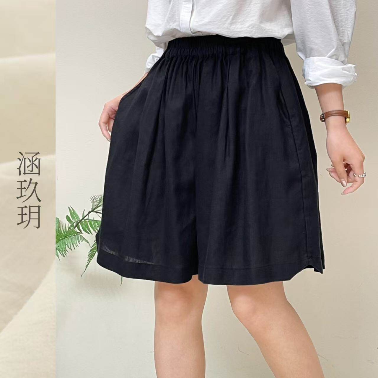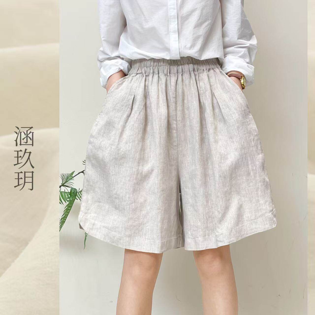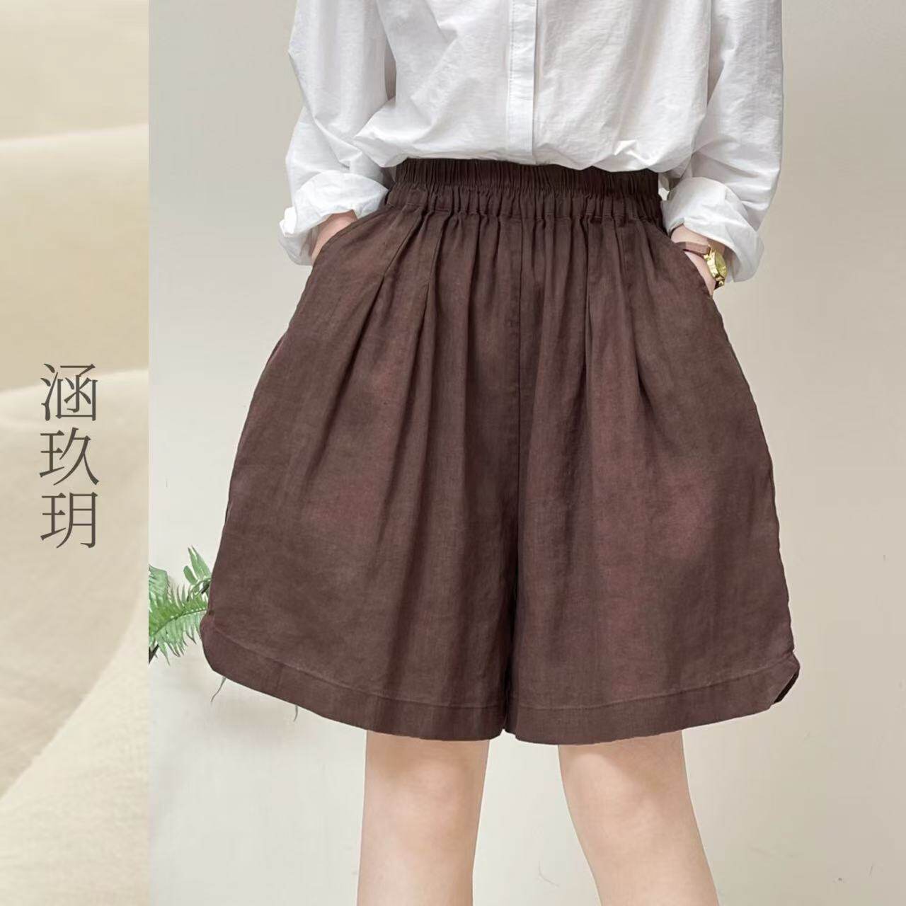 涵玖玥▪100%黄金纱雨露麻【松紧】春夏轻盈阔腿短裤丹-96663