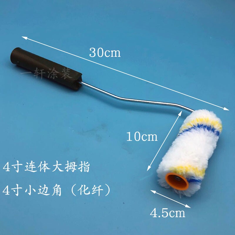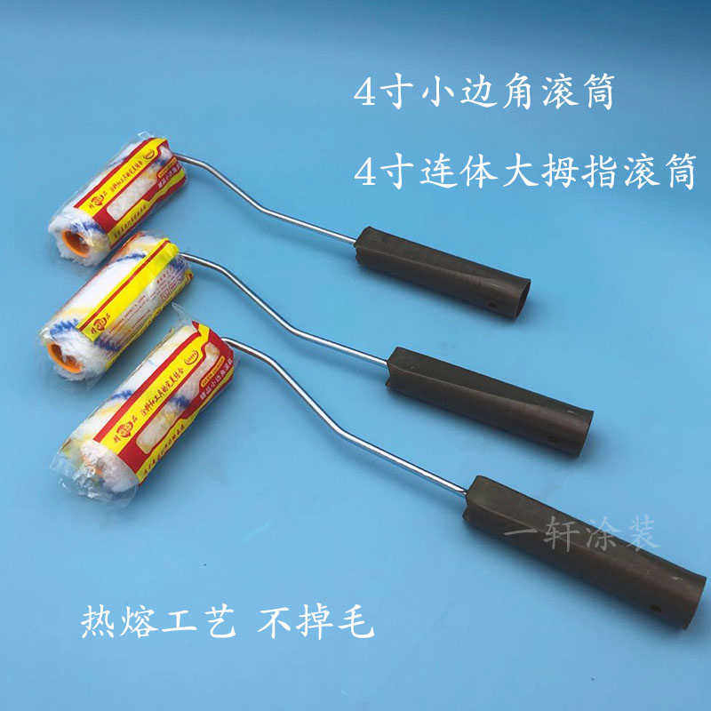 滚筒刷4寸油漆乳胶漆胶水涂料刷耐溶剂4寸小边角连体大拇指滚筒刷