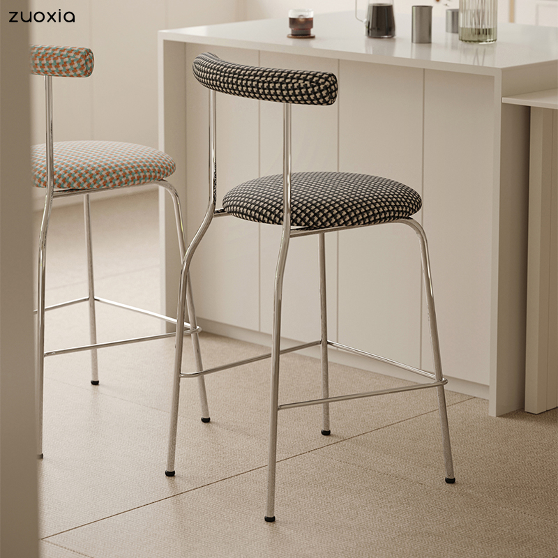 左下北欧吧台椅子家用复古高脚凳酒吧前台高脚椅现代简约餐椅台凳