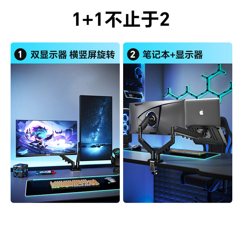 友狮双屏显示器支架一拖二机械臂台式电脑双臂通用底座屏幕支撑架