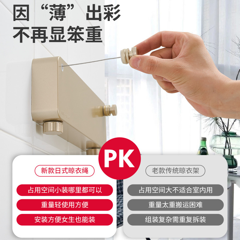 隐形晾衣绳免打孔伸缩晾衣架阳台卫生间室内户外钢丝绳晾衣神器