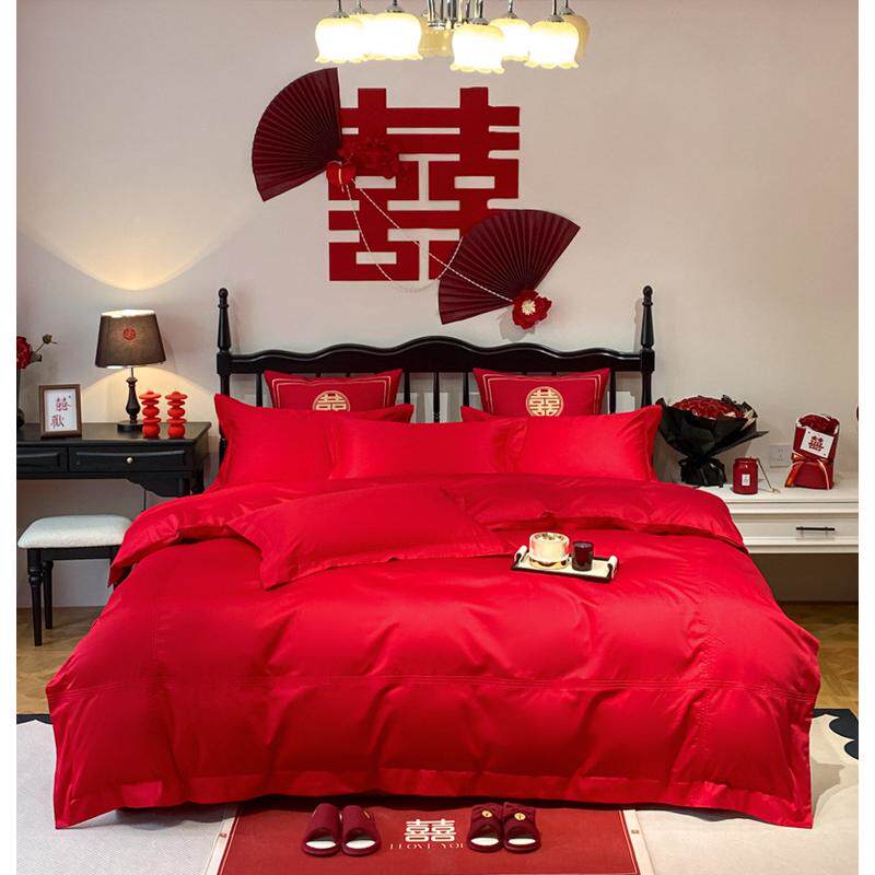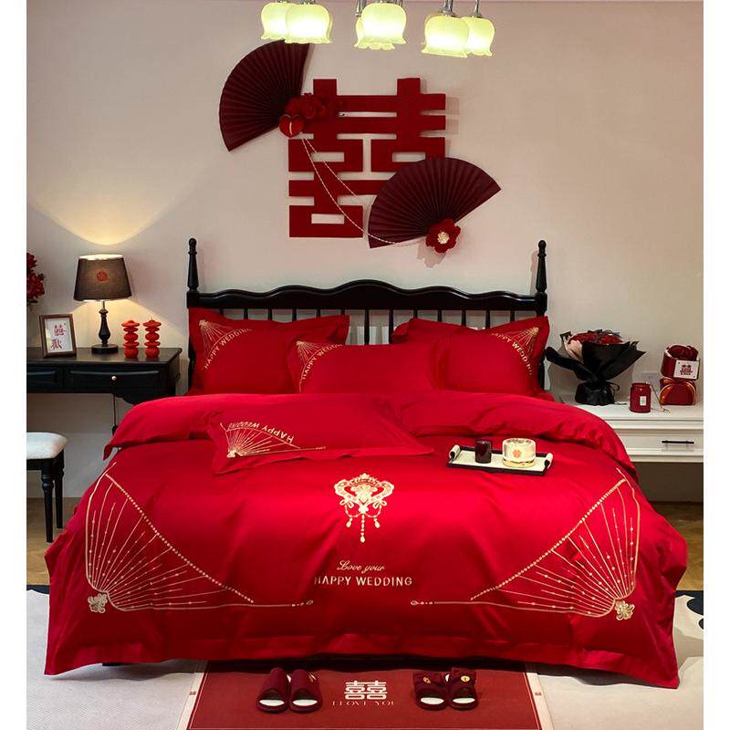 2024新款绣花全棉红色婚庆四件套系列1.8m床单款四件套简爱