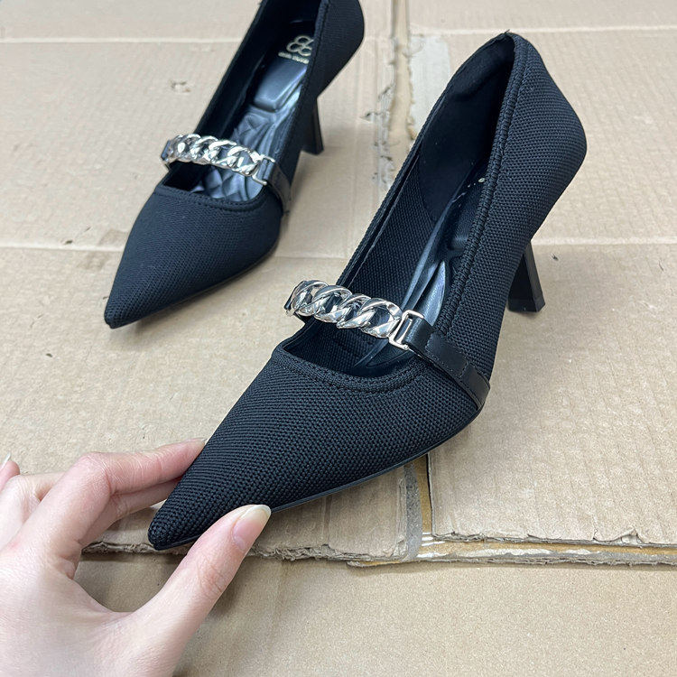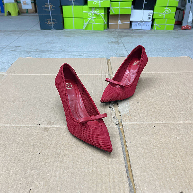 外贸原单shoes关税原因工厂清仓偏大一码尖头蝴蝶结浅口细跟单鞋