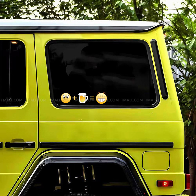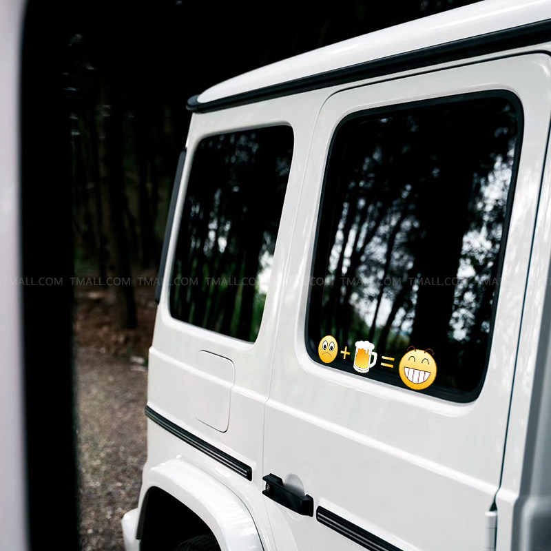 个性创意表情难过+啤酒=开心车贴搞笑汽车电动车摩托装饰贴画贴纸