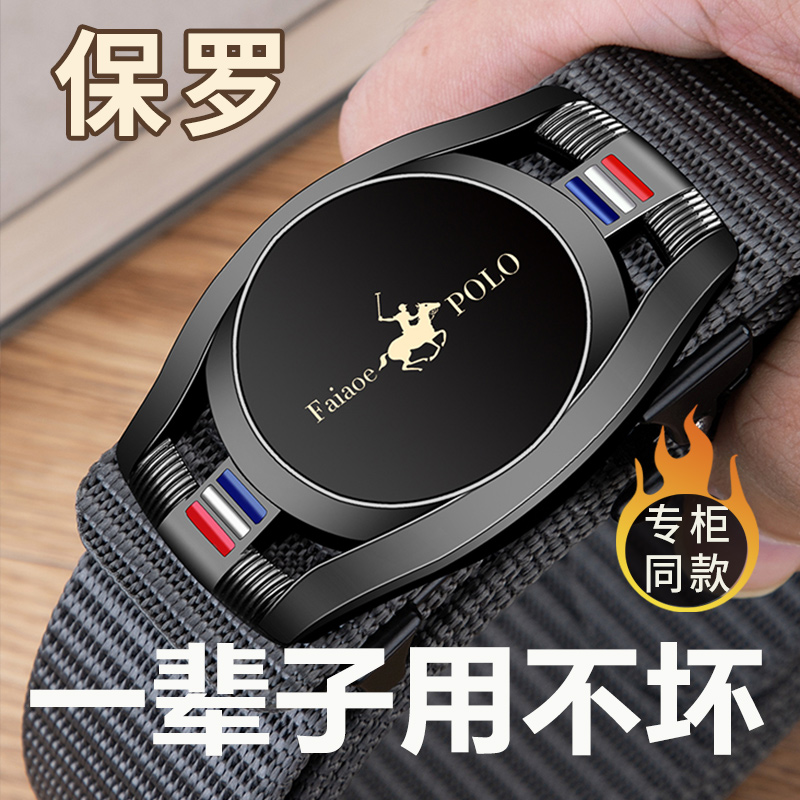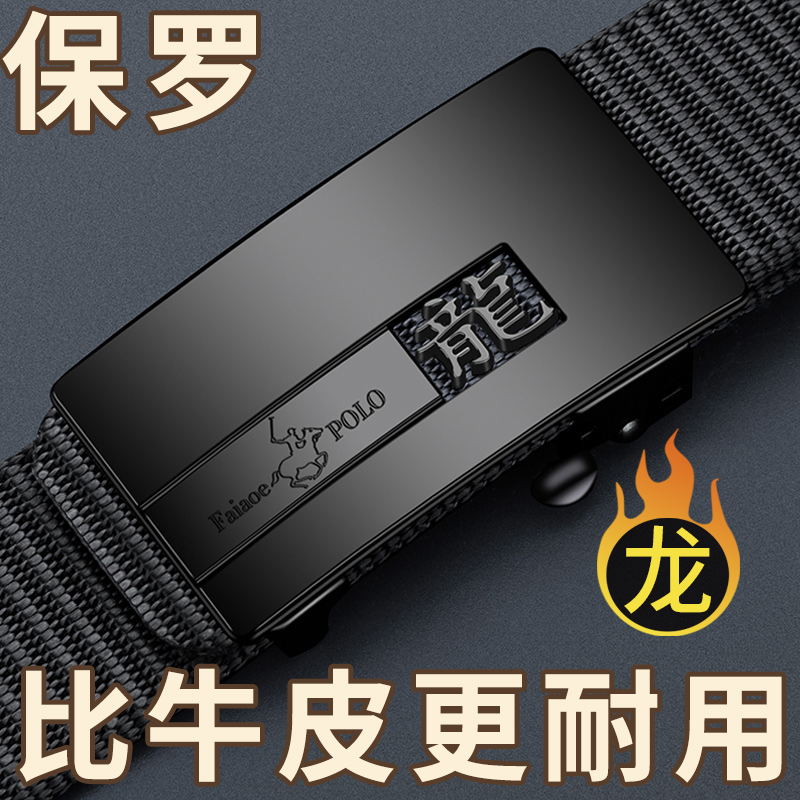 保罗帆布皮带男潮牌自动扣腰带新款工装战术休闲百搭裤带耐用透气