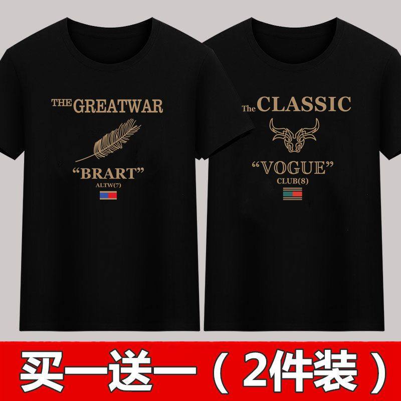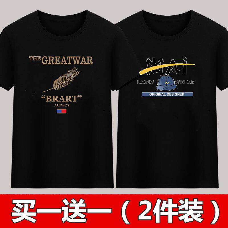 夏季新款男士短袖T恤男黑色薄款体恤青年上衣服宽松印花打底衫男t