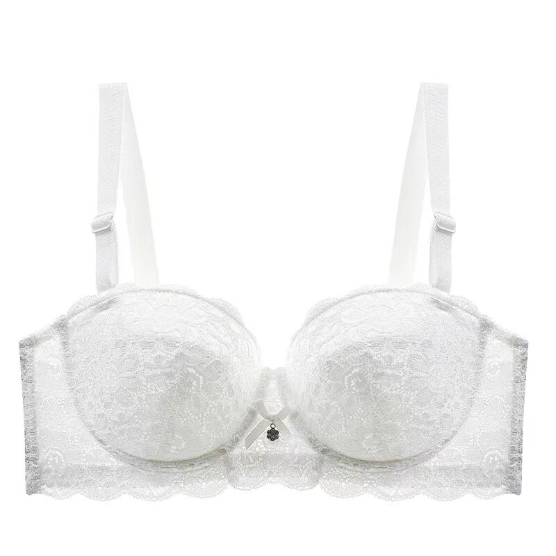 首页> 内衣> 白色双肩带大胸显小半杯轻薄内衣女软钢圈聚拢舒适透气12文胸乳罩