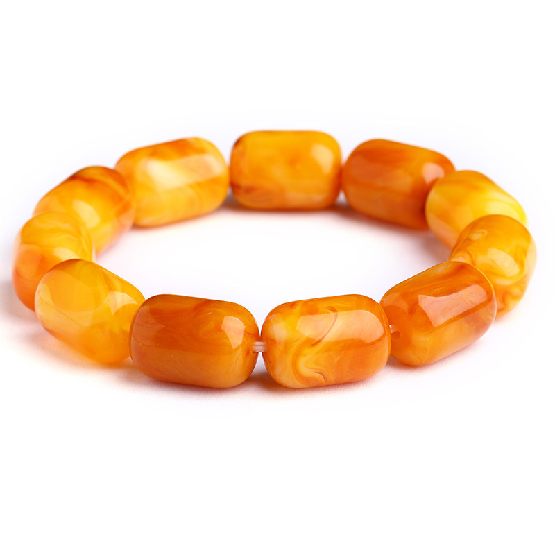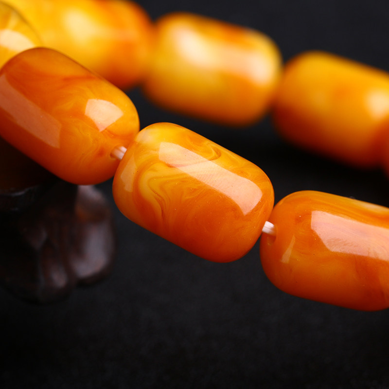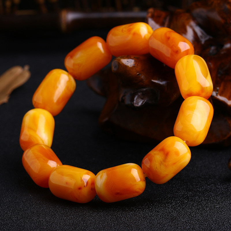 一代纯天然原矿琥珀老蜜蜡桶珠手串原石男女款鸡油黄圆珠佛珠手链