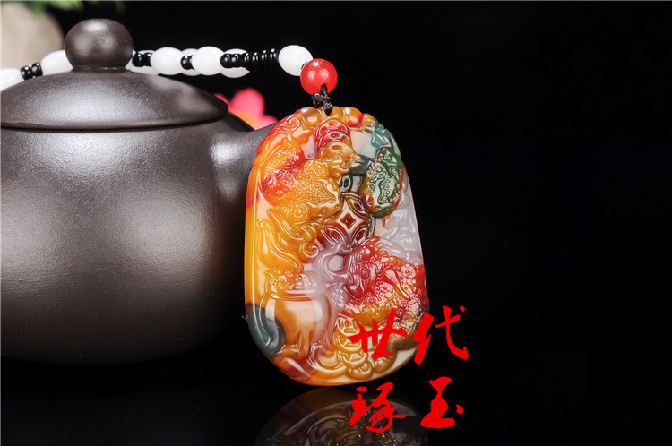 新疆和田玉金蟾吊坠七彩金丝玉金蟾万贯挂件三足金蟾玉牌玉毛衣链