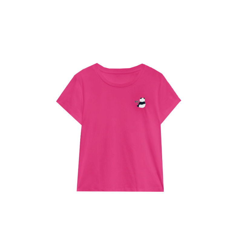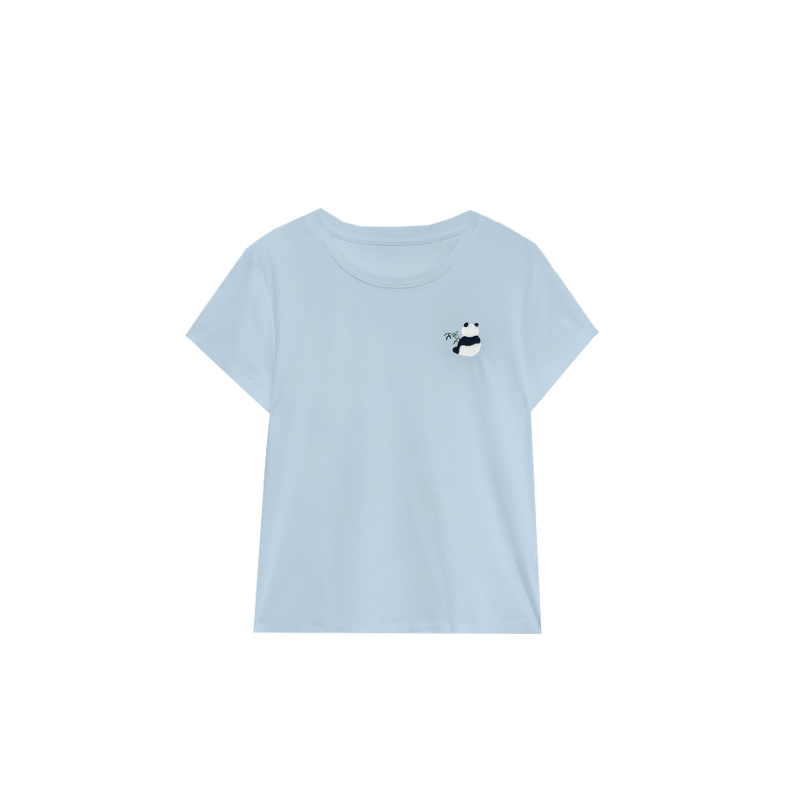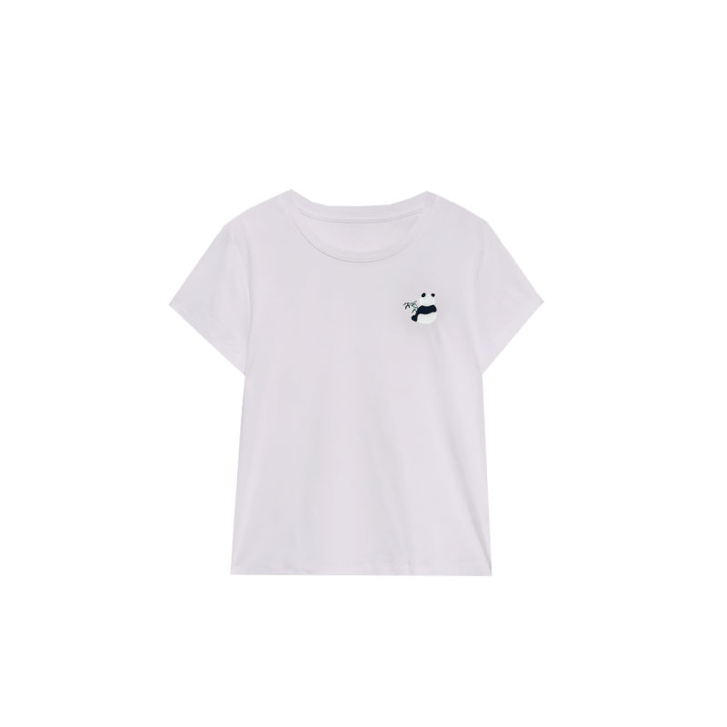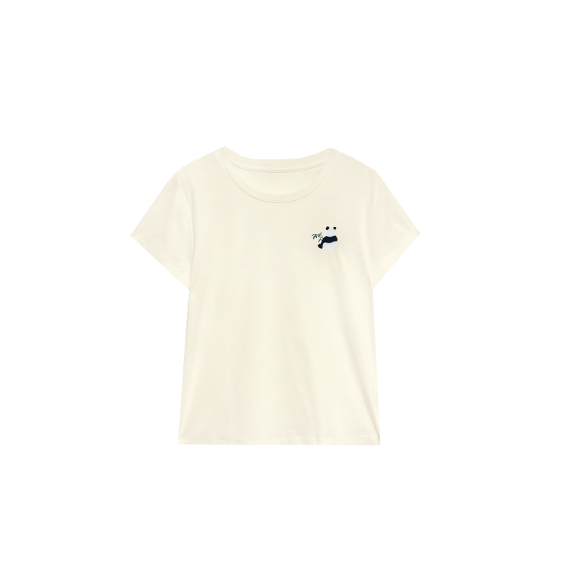 【橙庐】808001原创莫代尔桑蚕丝绵熊猫刺绣T恤 春夏女款国风弹力