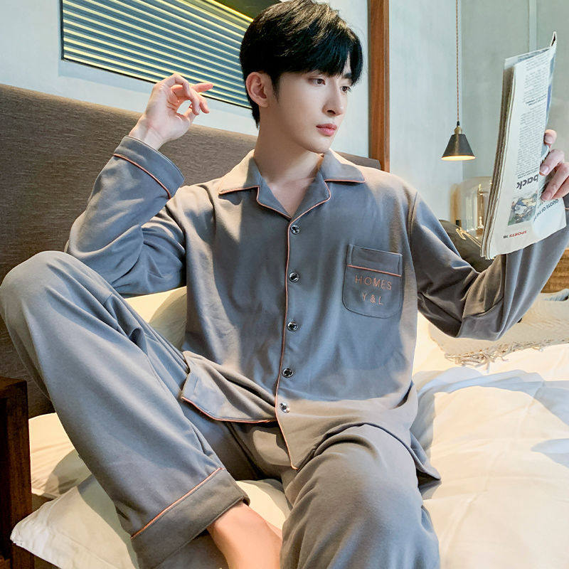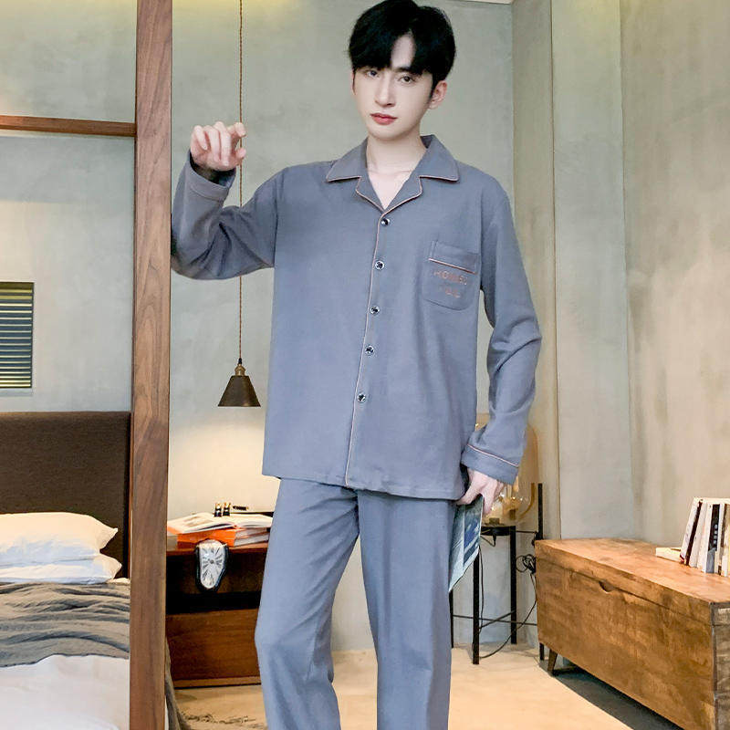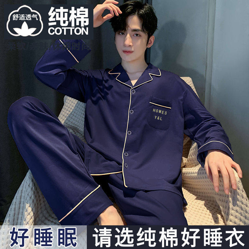 俞兆林睡衣男士春秋款100%纯棉长袖薄款青年大码外穿男款夏季