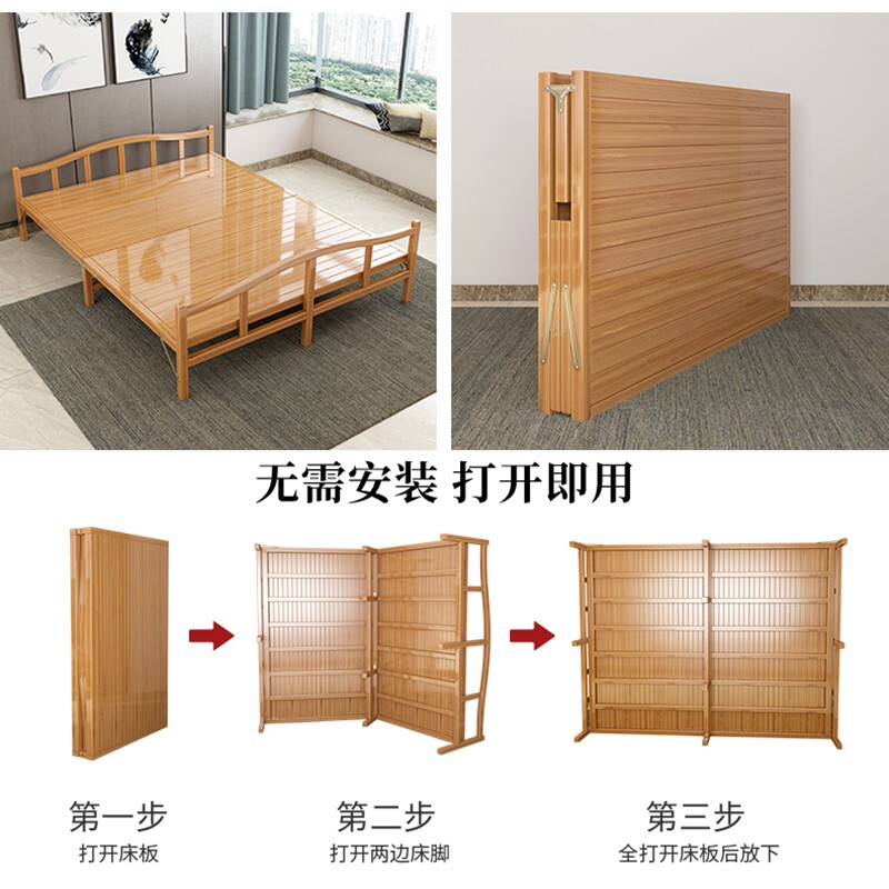 竹床折叠床单人竹子双人简易家用成人午休凉床出租房硬板竹板木床