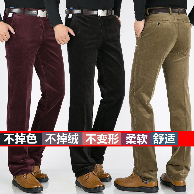 高端品质秋冬厚款中年男士条绒休闲宽松弹力裤灯芯绒直筒长裤男