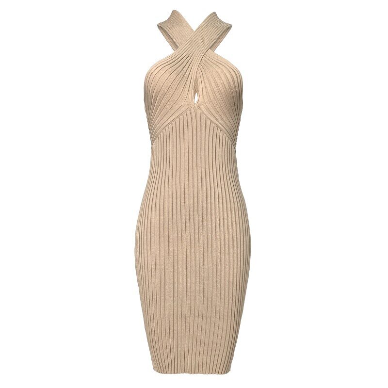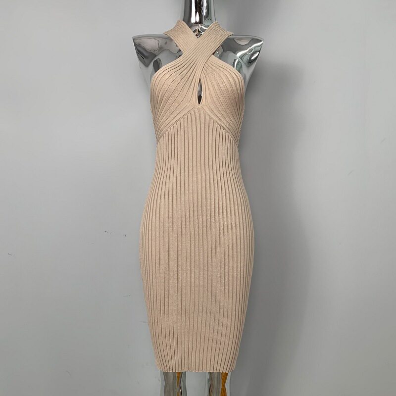 韩国春夏新款气质挂脖镂空修身显身材针织包臀打底连衣短裙女时尚