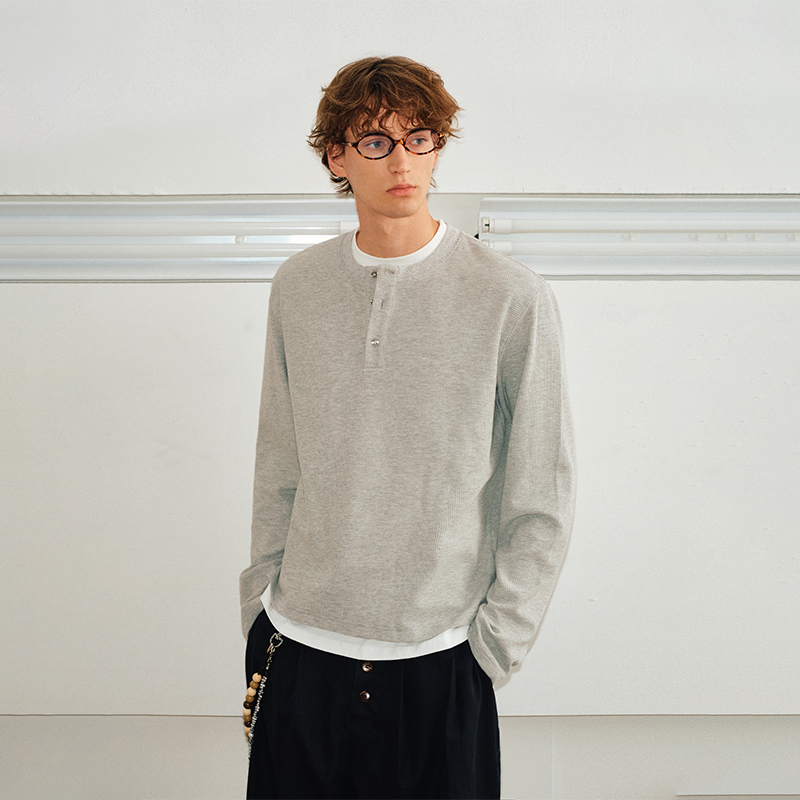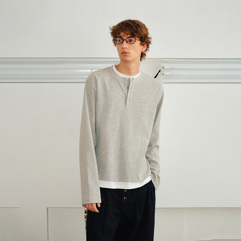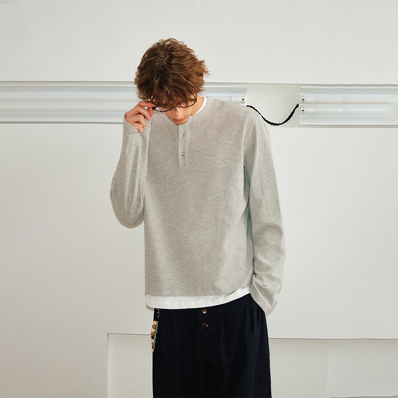 首页> 男装> KREATE 城市通勤 华夫格亨利领假两件长袖t恤男秋季宽松打底上衣