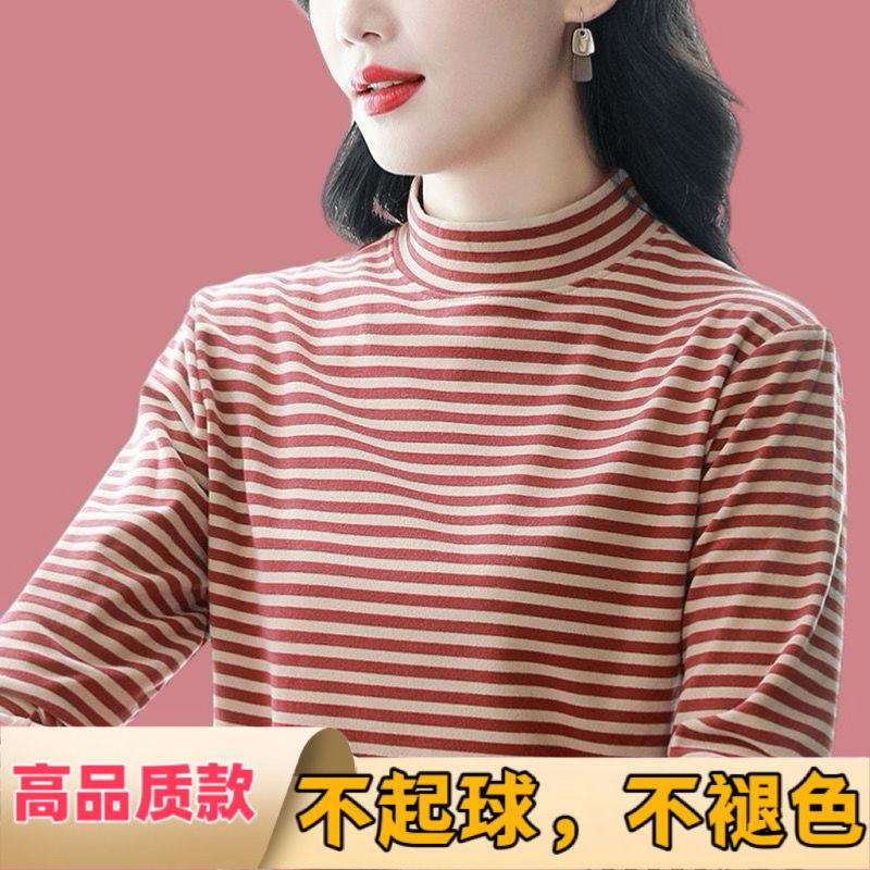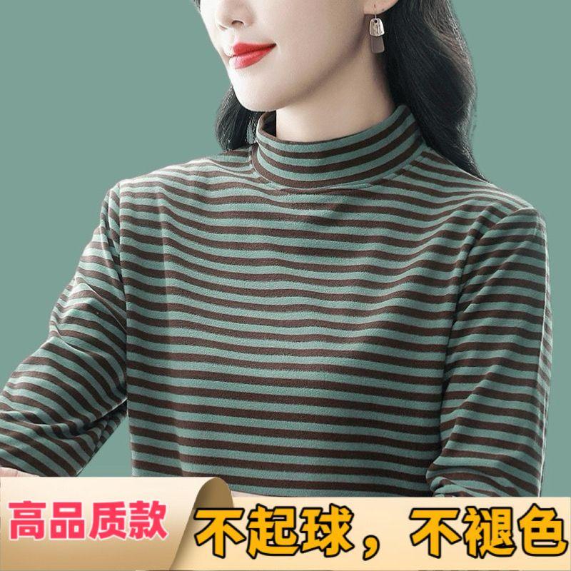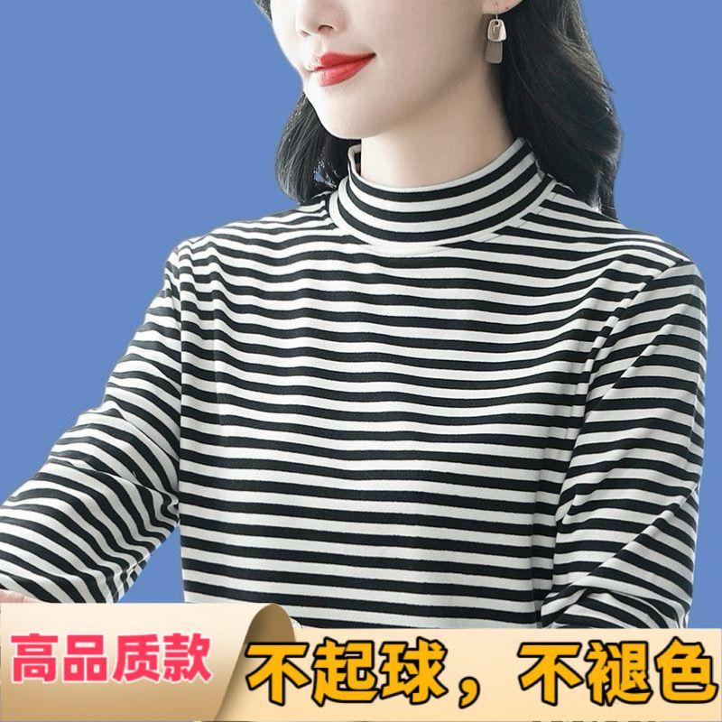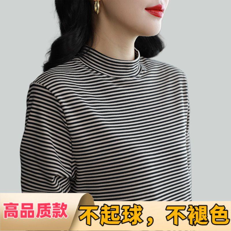 双面德绒半高领打底衫女长袖T恤秋冬2024新款可外穿洋气宽松内搭