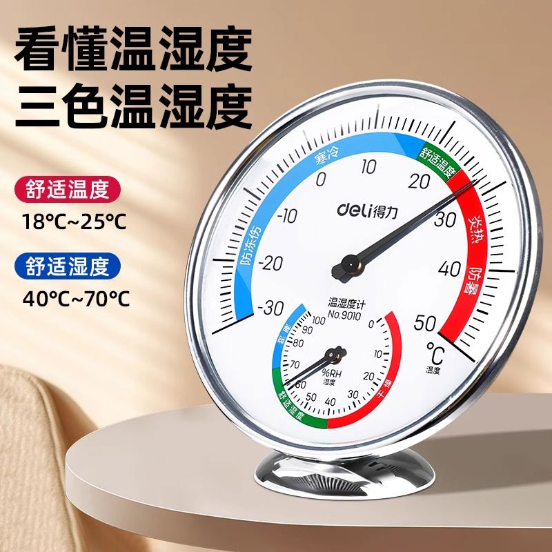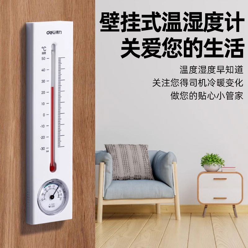 得力温湿度计家用温度计室内壁挂式大棚悬挂高精度婴儿房间温度表