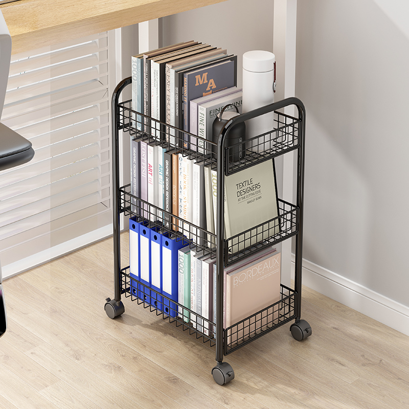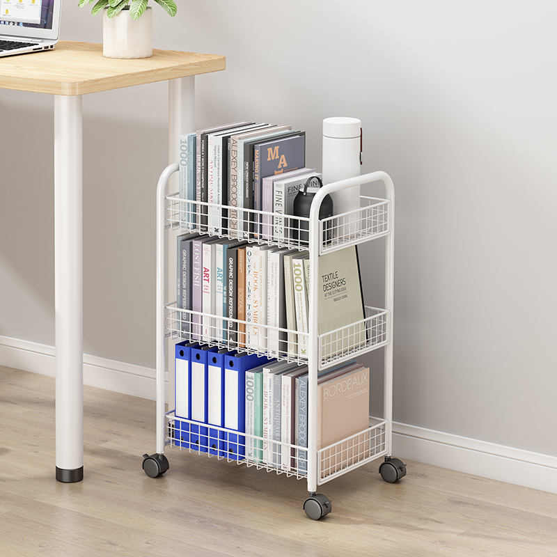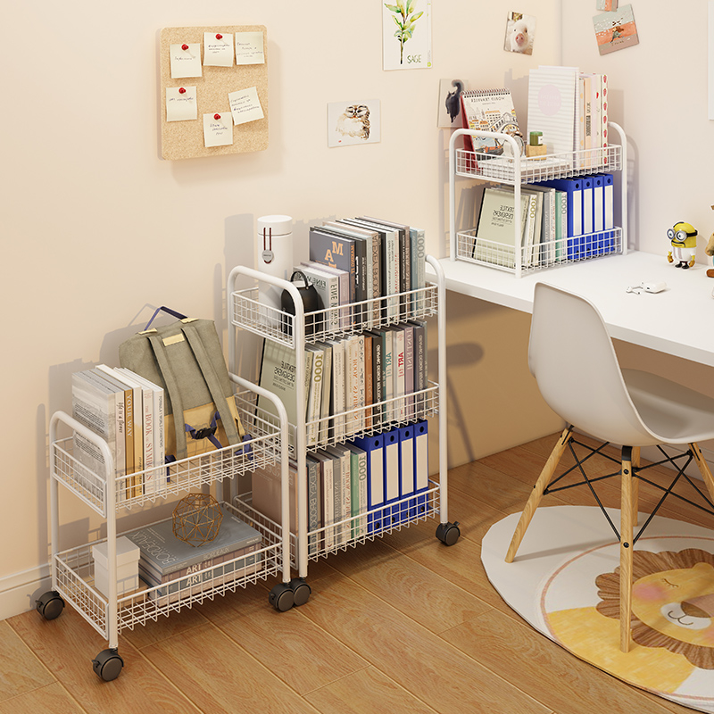 简易书架落地桌下书本收纳书桌面课桌旁桌边置物架小推车移动带轮