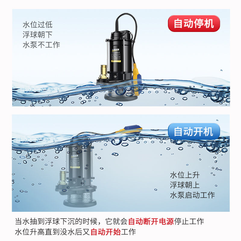 人民潜水泵220v带浮球高扬程大流量上海家用灌溉抽粪泥浆污水泵