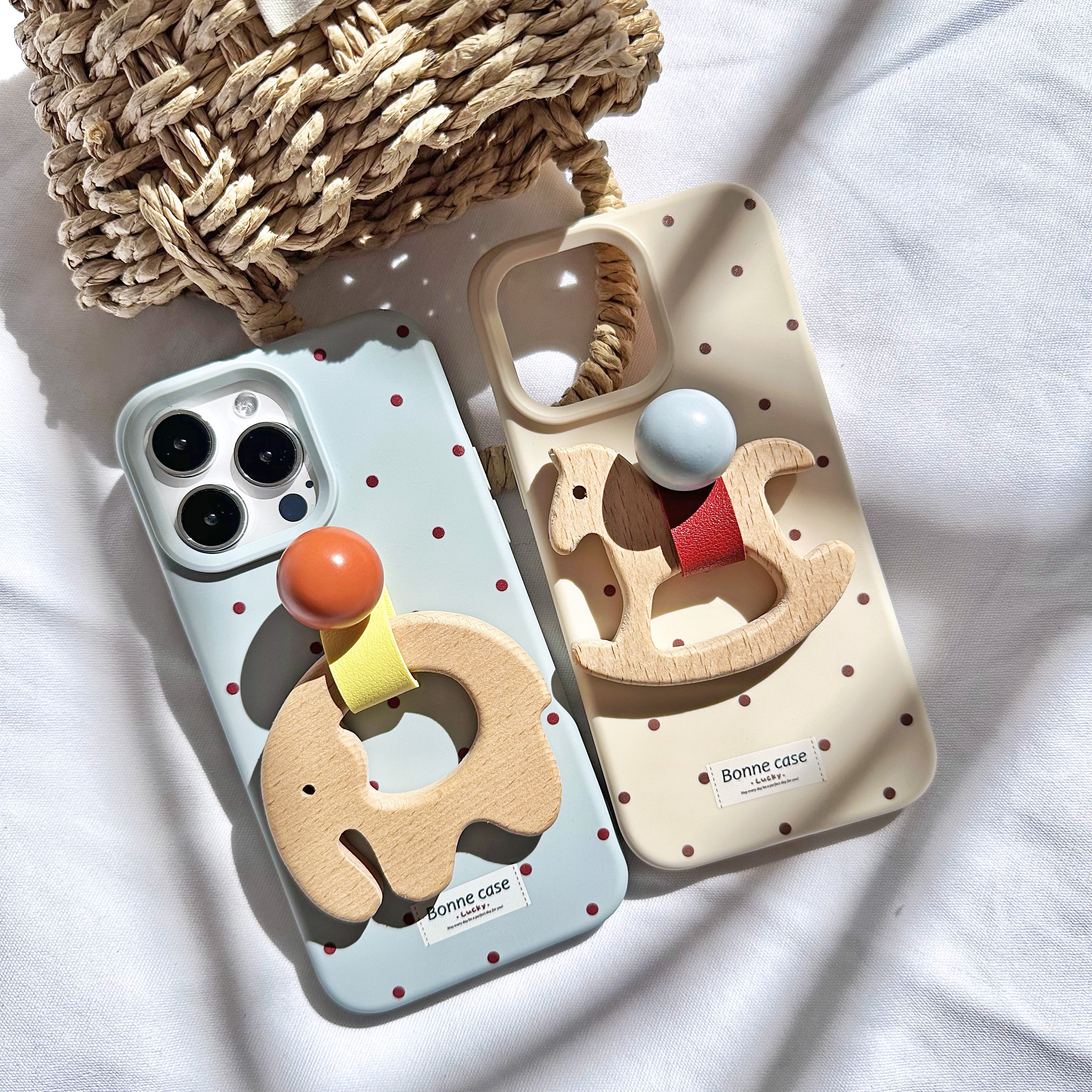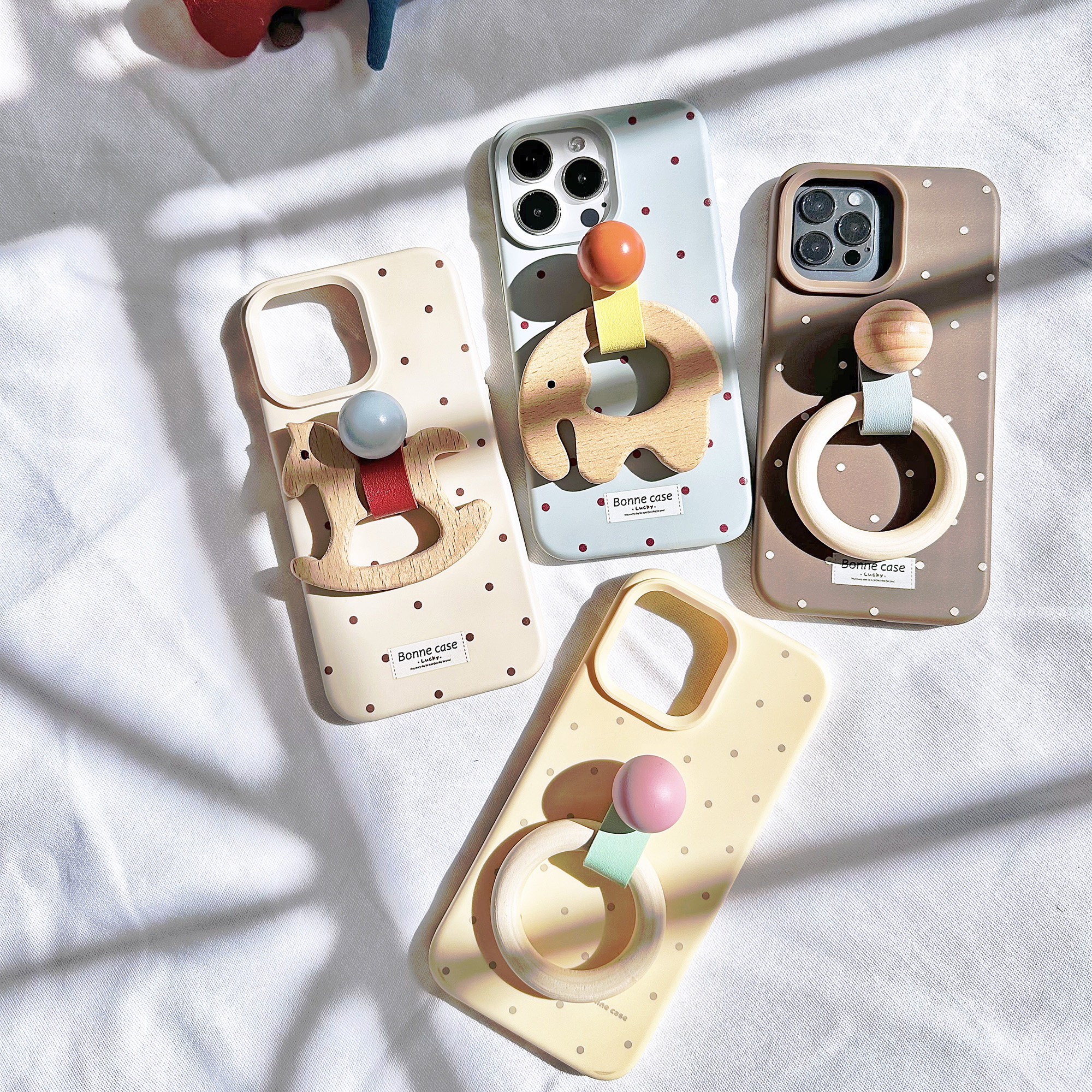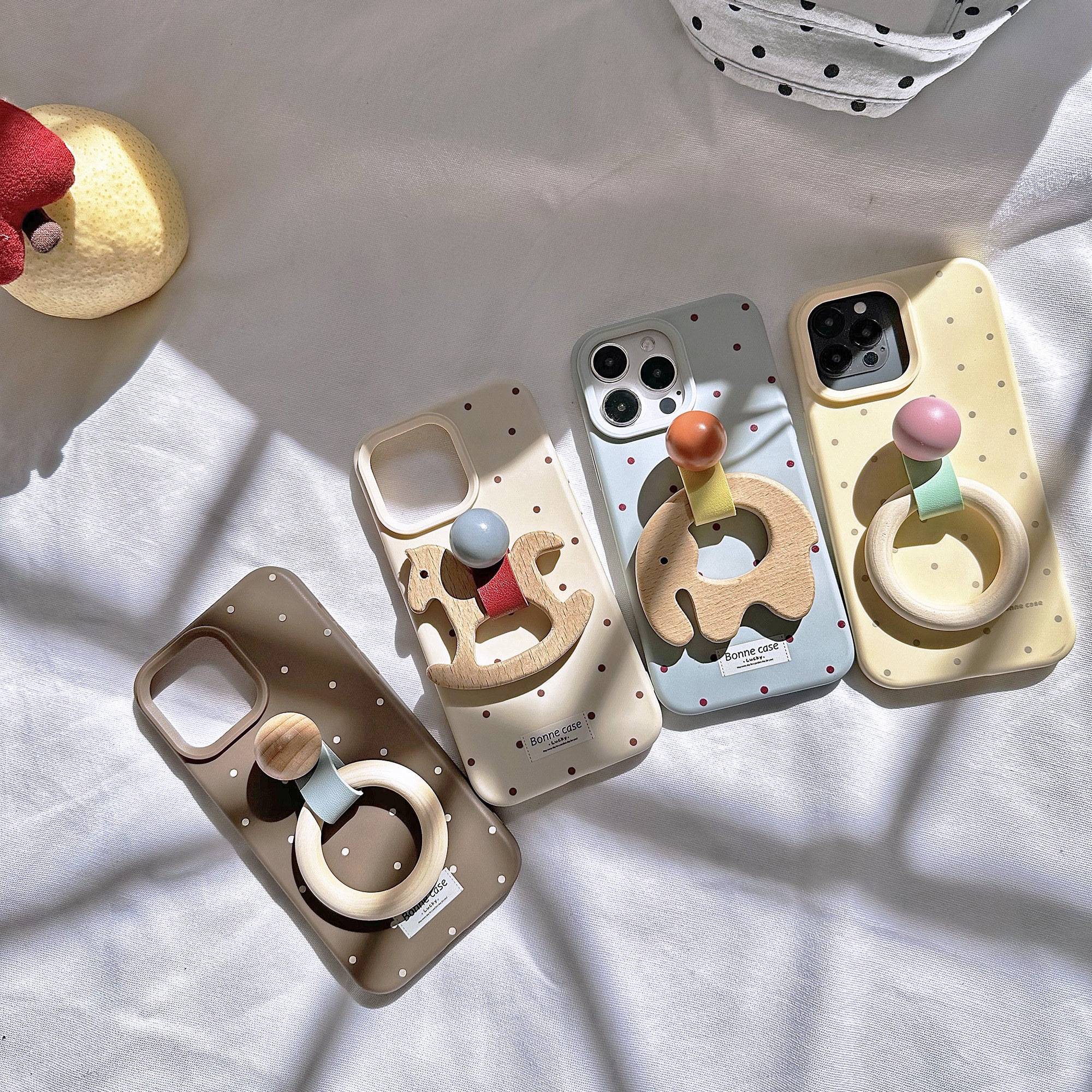 TRstudio原创设计卡通摇摇木马大象木头圆环圆球皮环支架手机壳全包软壳适用于iphone16pro15promax手提支撑