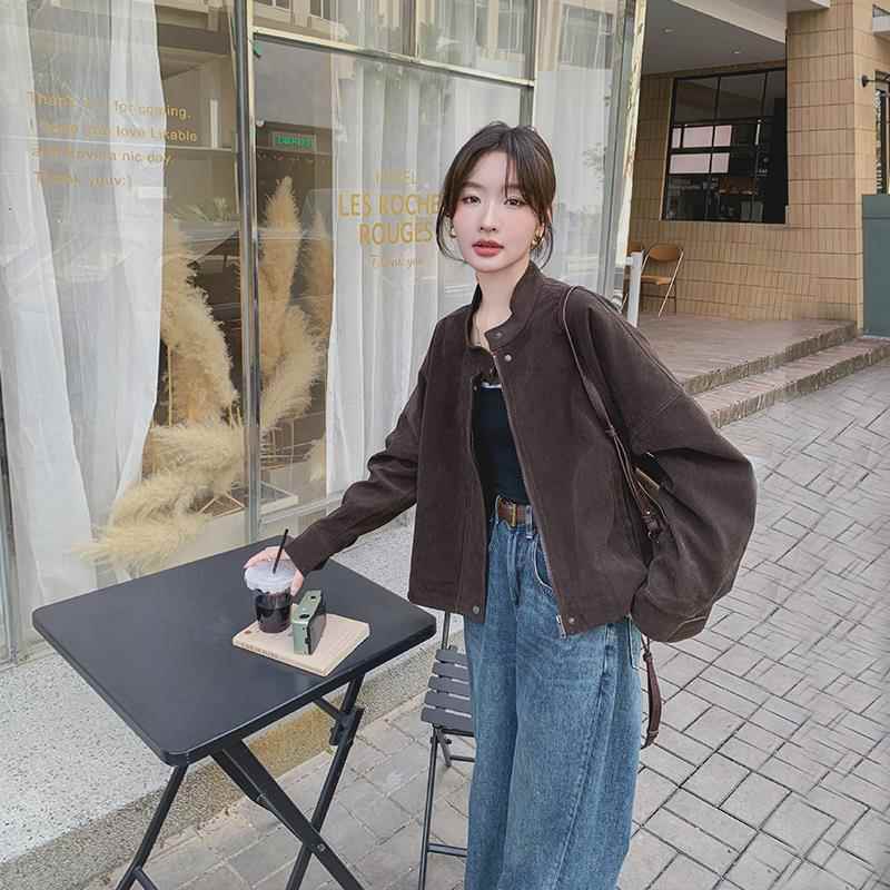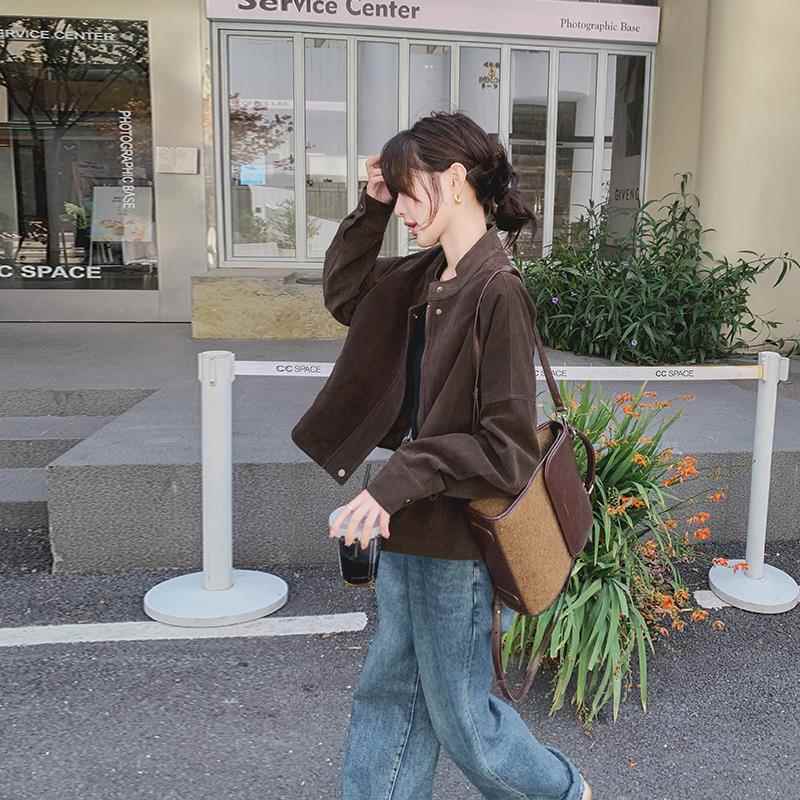 又a又飒美拉德麂皮绒短外套女春秋2024新款韩系气质休闲复古夹克
