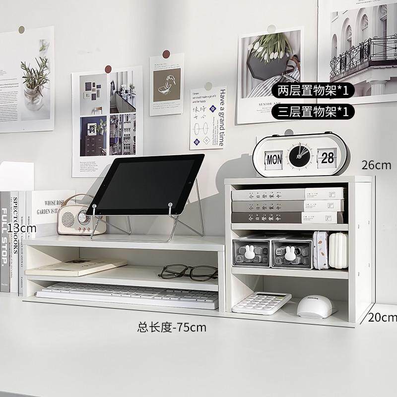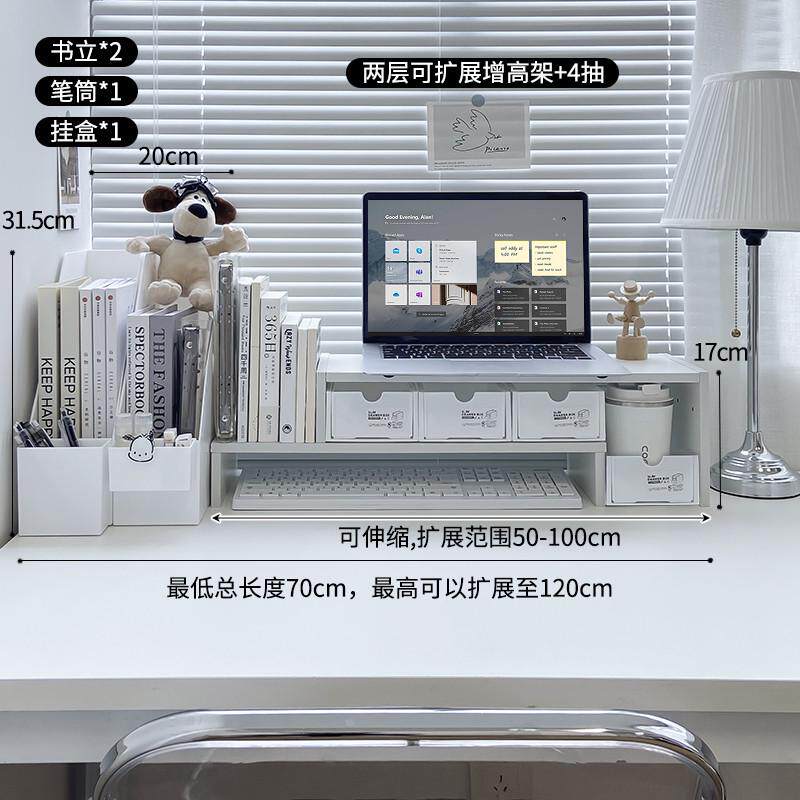 桌面办公收纳双层置物架木质电脑增高架宿舍桌面抽屉式多层新款