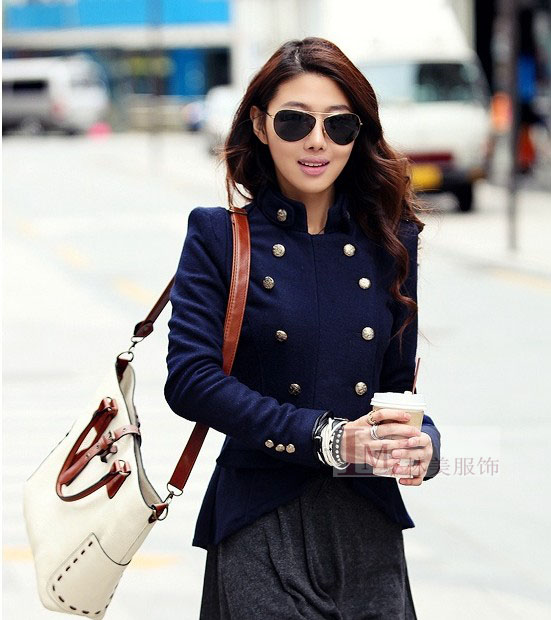 秋冬新款女装修身毛呢外套韩版休闲立领双排扣长袖显瘦女式短外套
