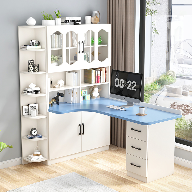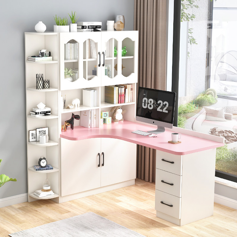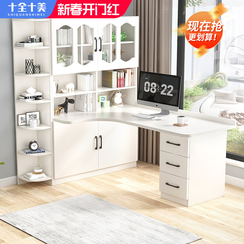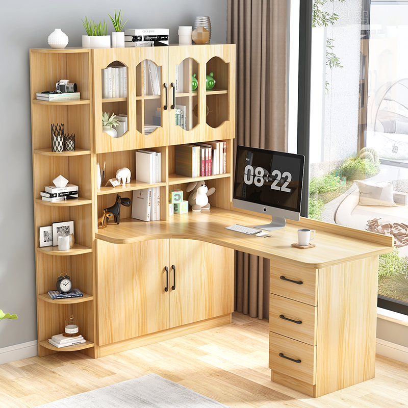 实木转角书桌书架一体书柜组合家用学生学习桌拐角现代台式电脑桌