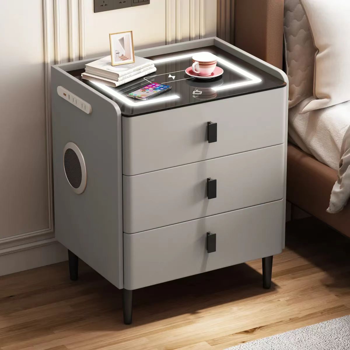 多功能卧室床边柜智能床头柜无线充电带蓝牙音响指纹锁高级感轻奢