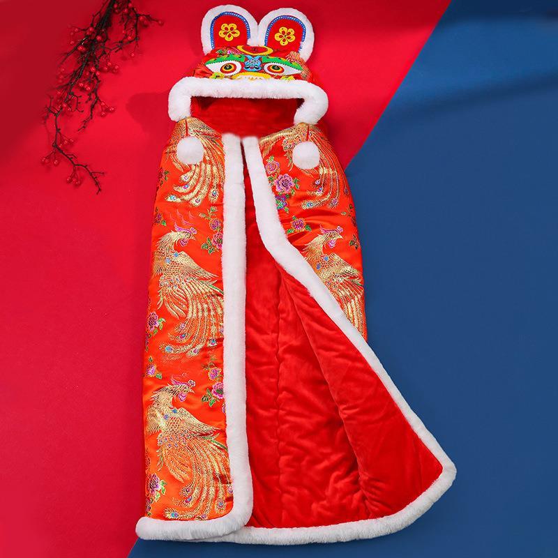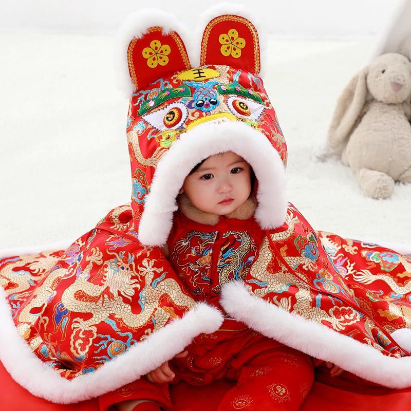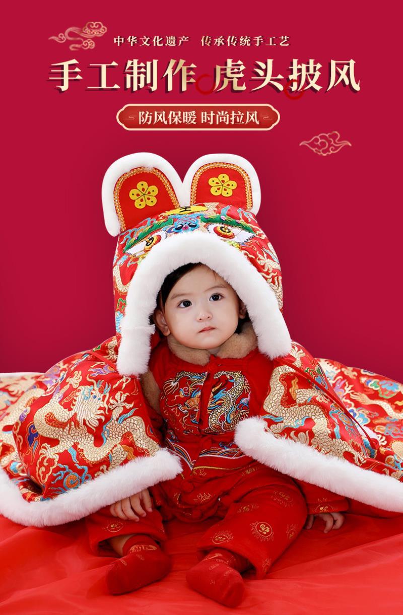 手工真兔毛虎头披风婴儿披风加厚成人披风护肩儿童斗篷宝宝斗篷