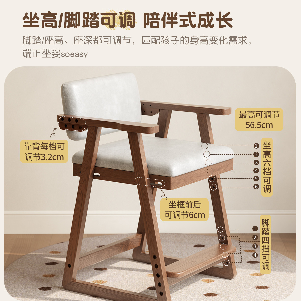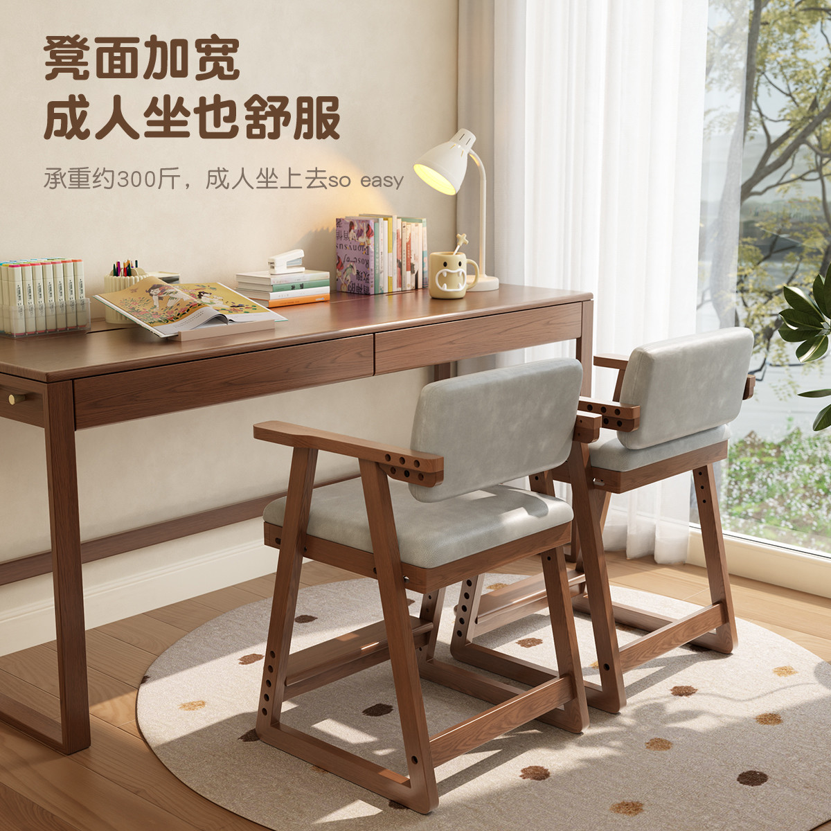 冬木实木儿童学习椅子可调节升降座椅小学生专用写字椅书桌椅餐椅
