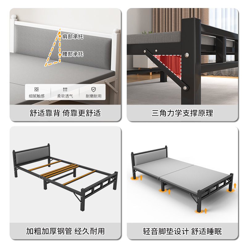 折叠床家用单人简易午休成人午睡加固双人小床宿舍出租房硬板铁床